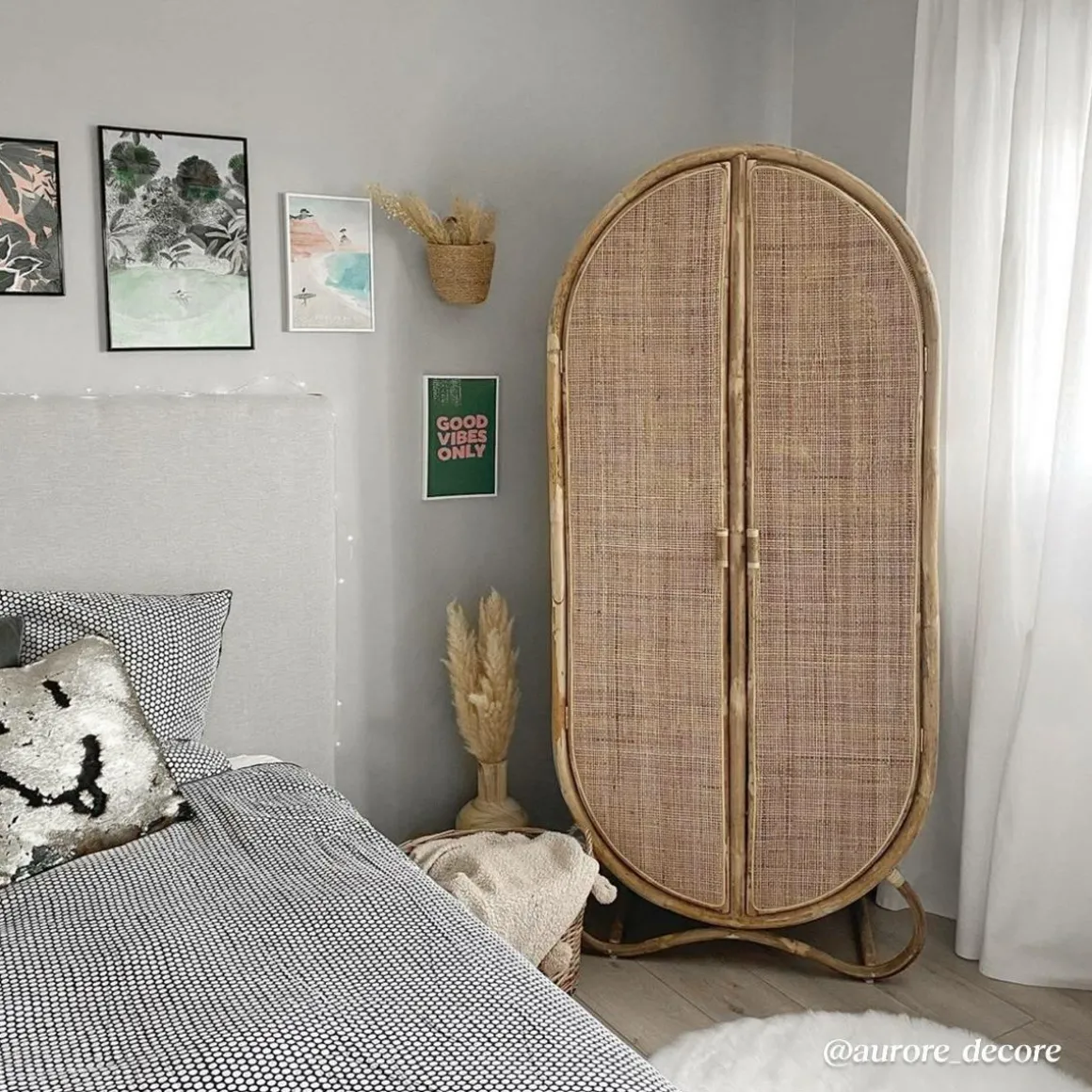 Pile dans la tendance actuelle, cette armoire allie parfaitement rotin et cannage. On aime l’originalité de son design, on aime la qualité de ses matériaux, et on aime ses nombreux rangements. En effet, ses deux portes cachent trois étagères parfaites pour organiser votre rangement.