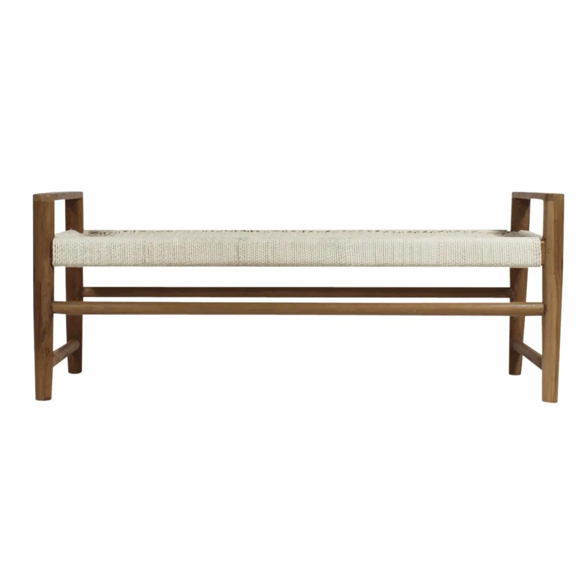 A la fois confortable et esthétique, ce banc bois massif est conçu à partir d’un bois qu’on aime beaucoup, à savoir le teck. Son réel atout réside dans l’originalité de son assise. Le cordage tressé confère une réelle identité au meuble et son coloris blanc/beige s’associe parfaitement avec les nuances du bois.
