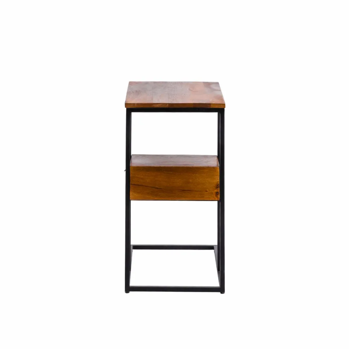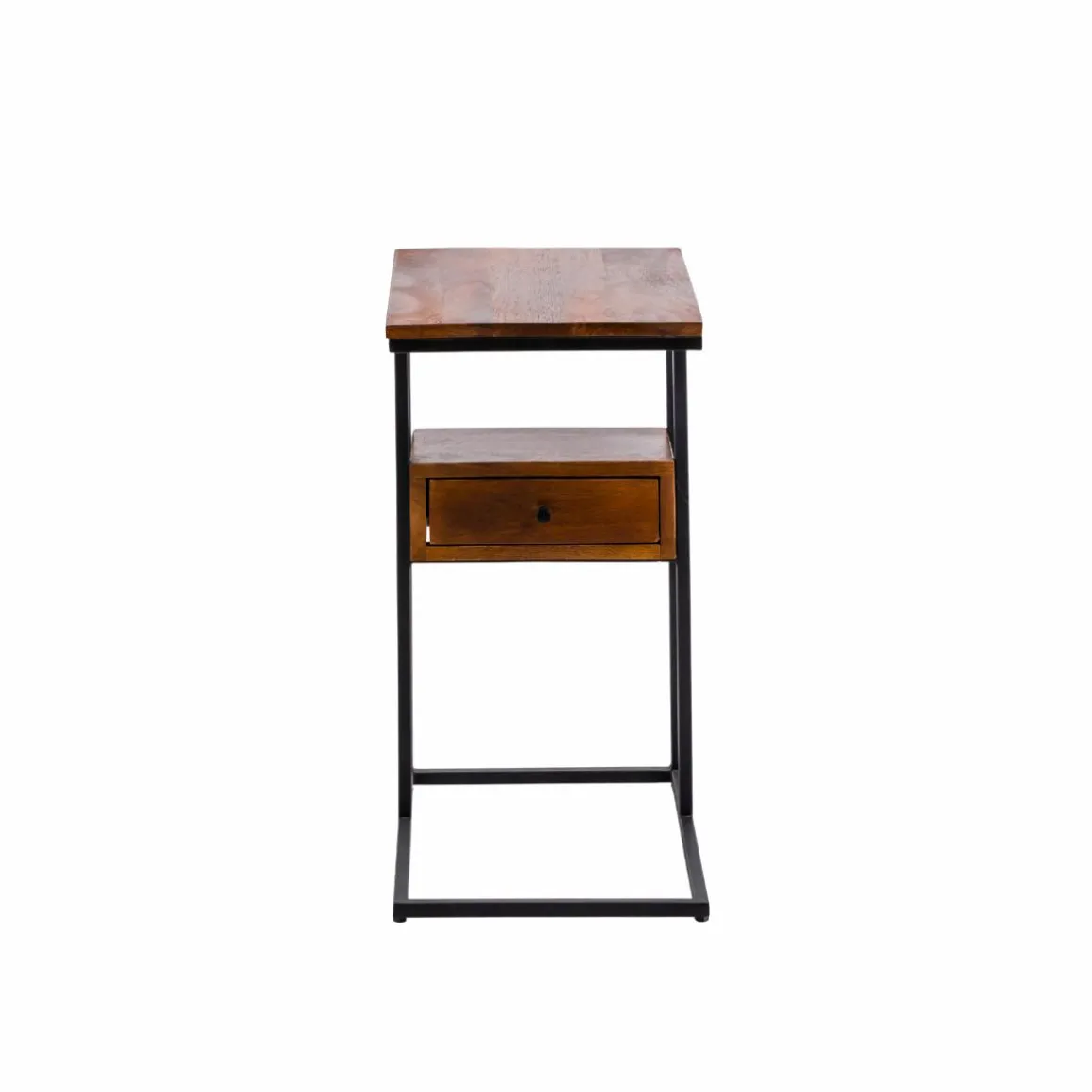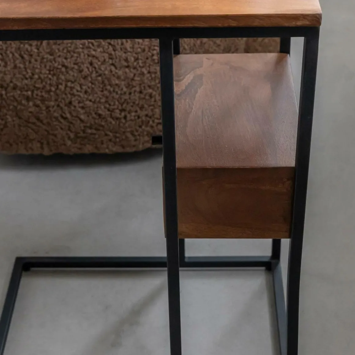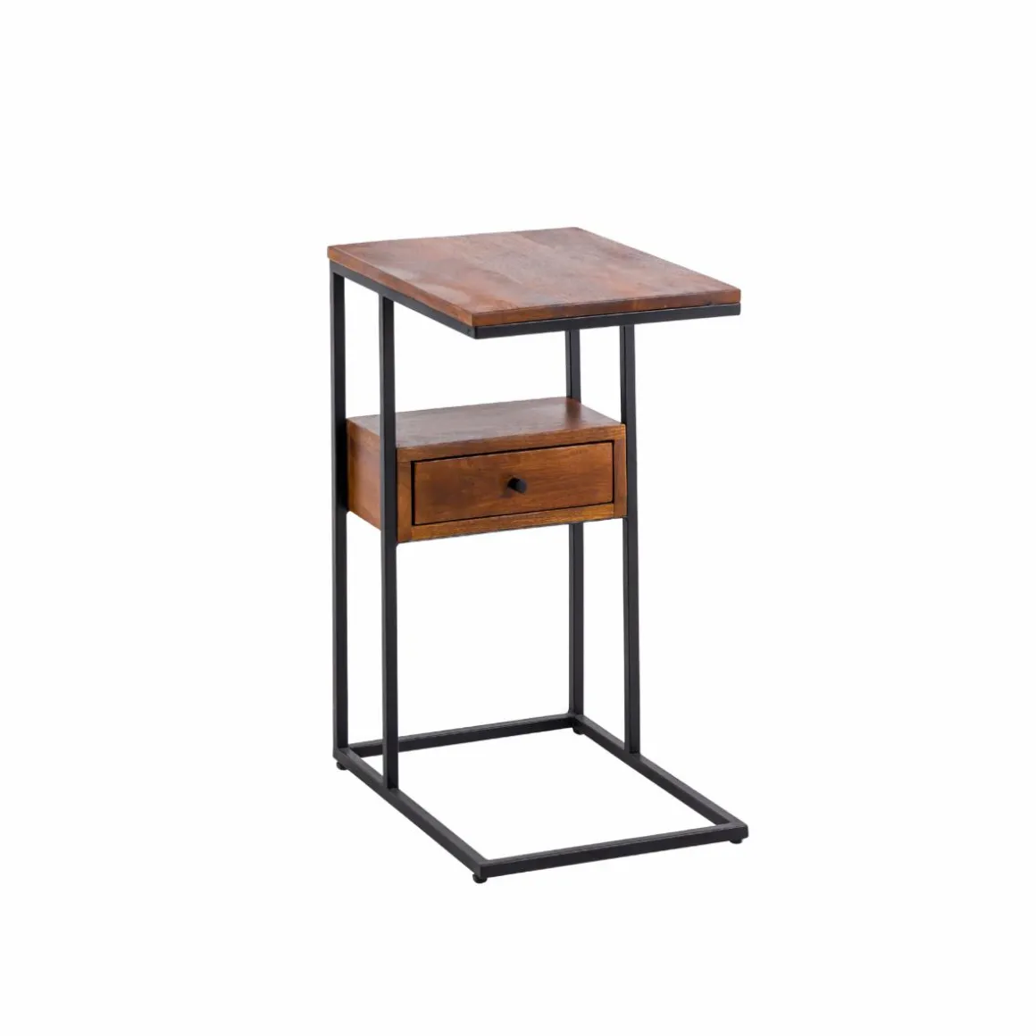 Ce bout de canapé en bois de manguier et métal allie praticité et modernité. Son design en forme de « C » permet de le glisser facilement près d’un canapé ou d’un fauteuil, offrant une surface d’appoint idéale pour poser une tasse, un livre ou un ordinateur. Le mariage du bois de manguier, aux nuances naturelles et chaleureuses, avec la structure métallique noire, apporte une touche industrielle élégante à votre intérieur.