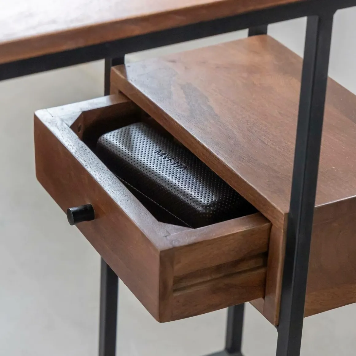 Fonctionnel, il est également doté d’un petit tiroir discret qui permet de ranger de petits accessoires du quotidien, il offre des dimensions de 5.5cm de hauteur, 22cm de largeur et 11cm de profondeur. Compact et polyvalent, ce meuble s’intègre parfaitement dans un salon contemporain ou un espace de vie plus éclectique.