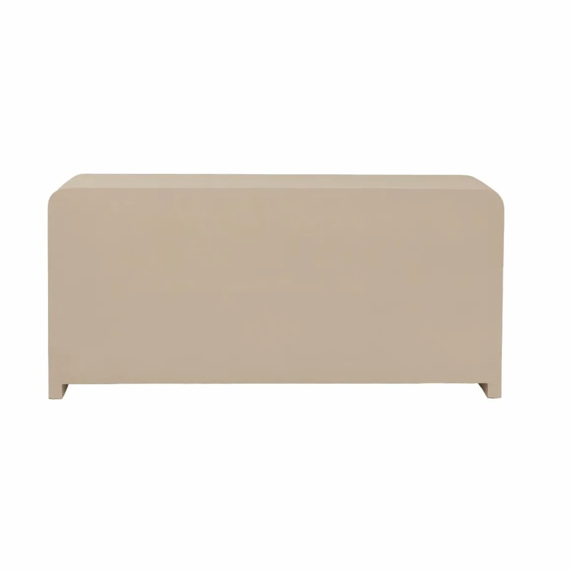 Les courbes arrondies donnent une sensation de douceur et d’élégance à ce meuble. Avec une hauteur de 75 cm, une largeur de 160 cm et une profondeur de 40 cm, il offre un espace généreux pour le rangement tout en étant compact et élégant.