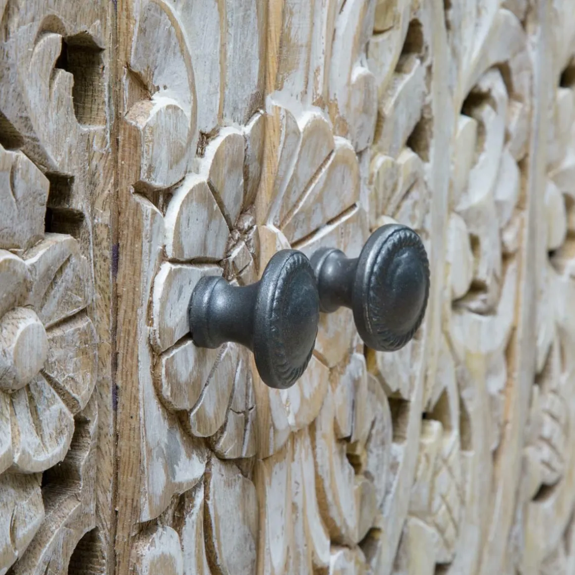 Conçu à partir de matériaux de qualité, à savoir du bois de manguier blanchi et du métal gris, ce buffet en bois massif affiche des façades de portes très raffinées. En effet, elles sont mises en valeurs par un sculptage précis et soigné qui lui confère un style ethnique indéniable. Il allie à la fois praticité et charme en entrant complètement dans les tendances actuelles.