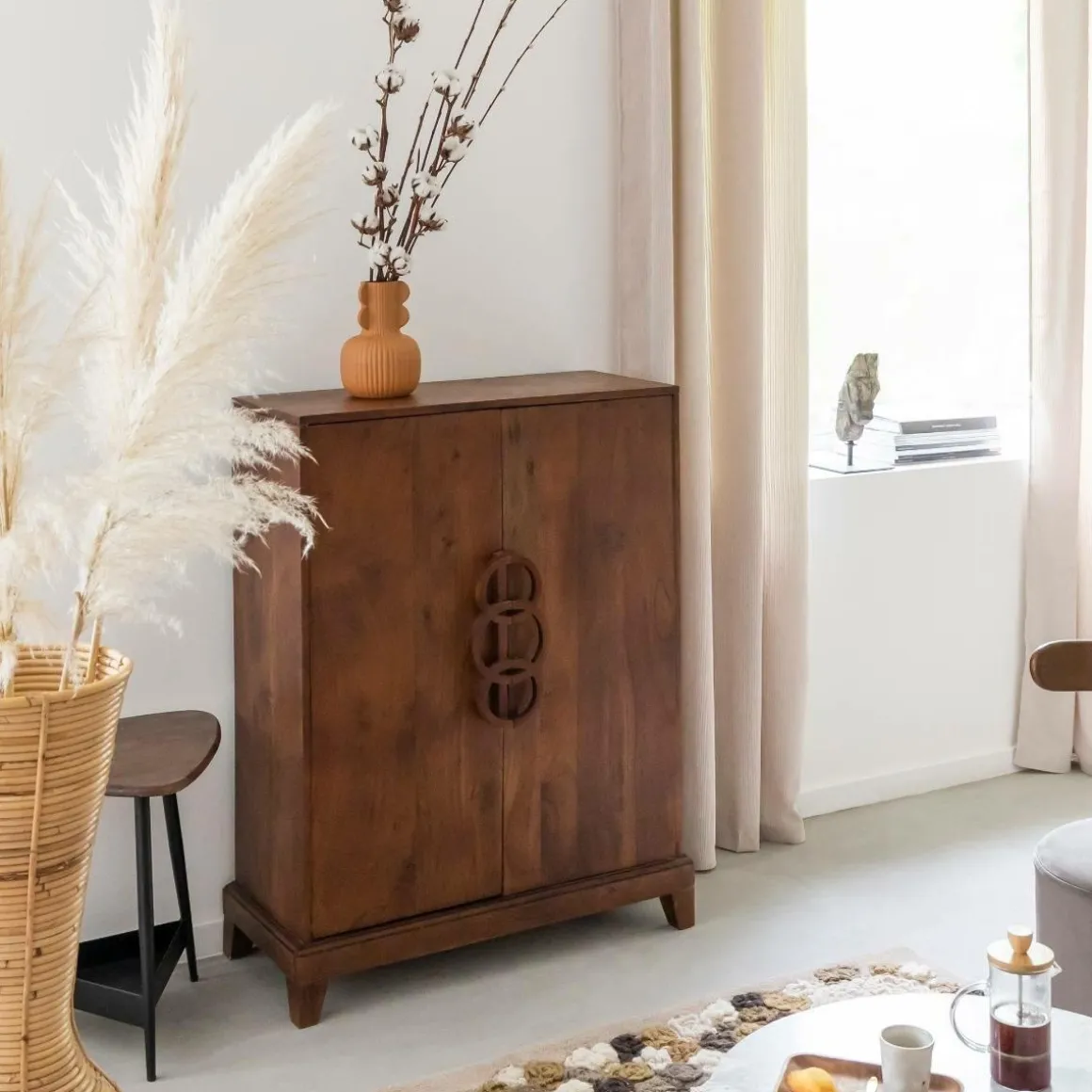 Fabriqué en bois d’acacia, il offre une qualité supérieure et une esthétique chaleureuse à votre espace de vie. Les poignées en forme d’anneaux ajoutent une touche d’originalité et de sophistication à son design.