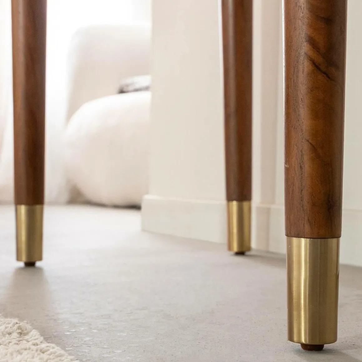 Issu de la collection Emiel, ce bureau-coiffeuse en acacia massif incarne l’élégance vintage dans sa version la plus raffinée. Son design compact et aérien s’adapte parfaitement aux petits espaces tout en offrant un véritable poste de travail ou de mise en beauté.