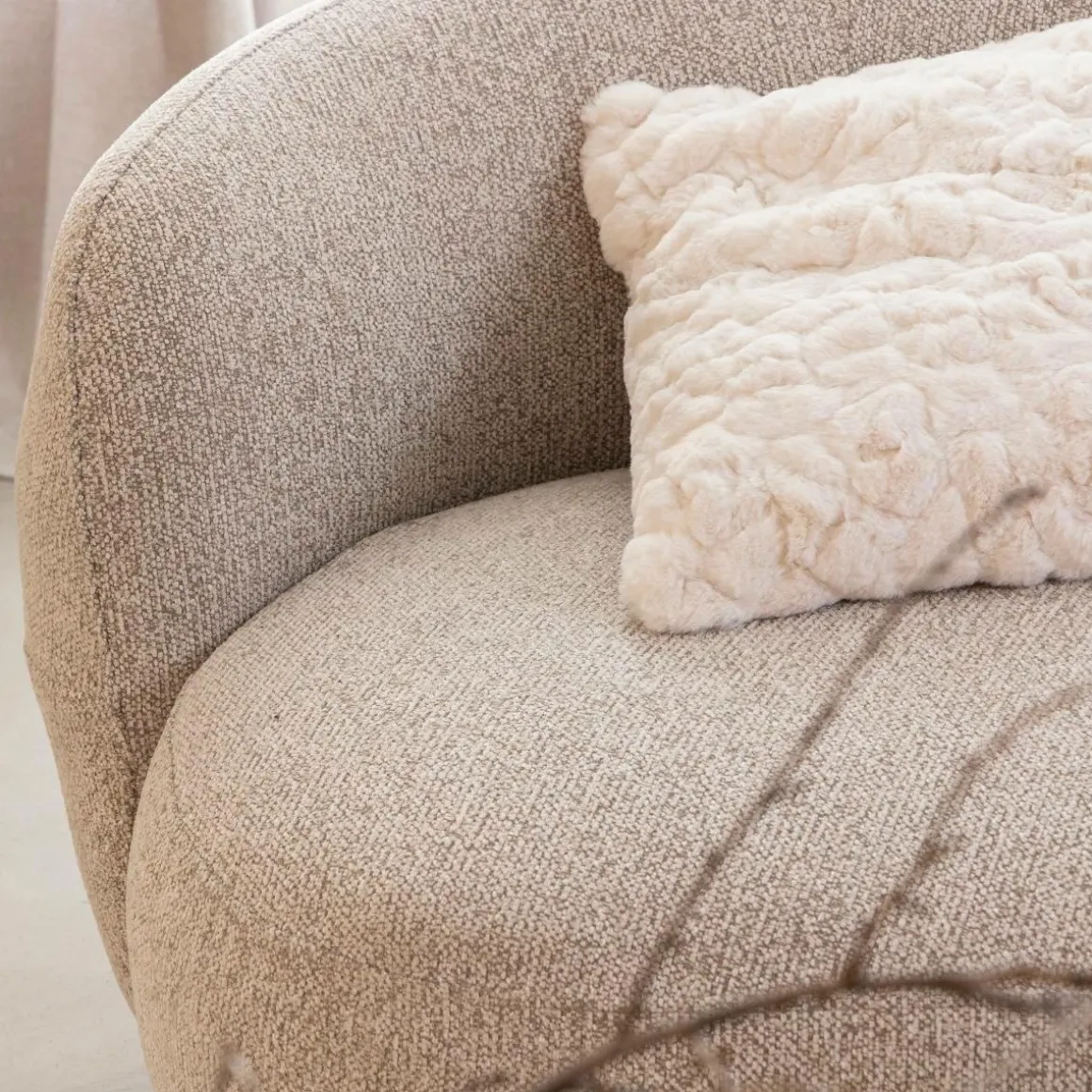 Avec ses 183 cm de longueur, 77.5 cm de profondeur et 66 cm de hauteur, il offre une assise généreuse et confortable pour accueillir famille ou invités. Son style sculptural et minimaliste en fait une pièce maîtresse dans un salon moderne, tout en conservant une vraie sensation de confort grâce à sa structure arrondie et son tissu bouclette tout doux.