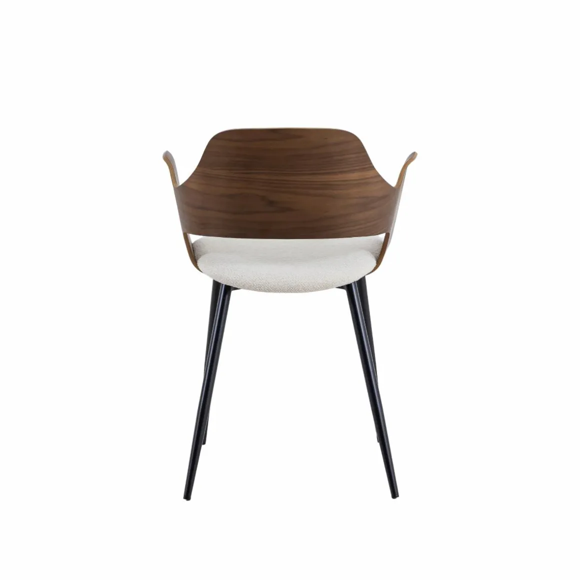 Ses pieds en métal noir fins et robustes complètent harmonieusement l’ensemble, soulignant son style moderne et intemporel. Polyvalente, cette chaise trouve facilement sa place autour d’une table de salle à manger, dans un bureau ou même en assise d’appoint. Elle incarne parfaitement l’équilibre entre confort, élégance et praticité.