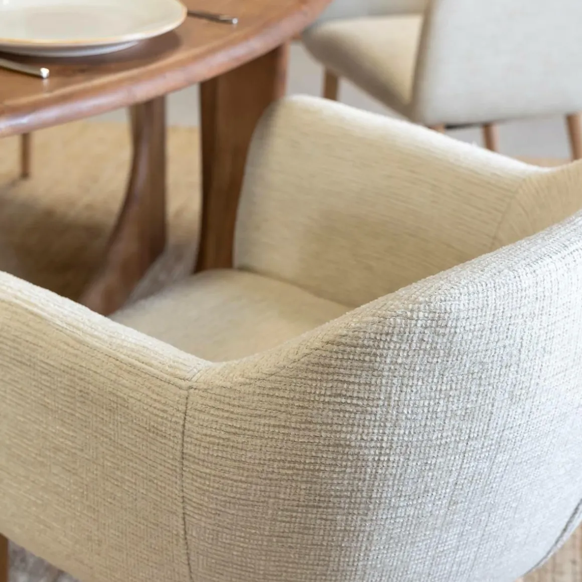 La chaise Solène incarne parfaitement les tendances actuelles en matière de décoration intérieure. Habillée d’un tissu légèrement beige, elle apporte une touche de douceur et de sophistication à tout espace.