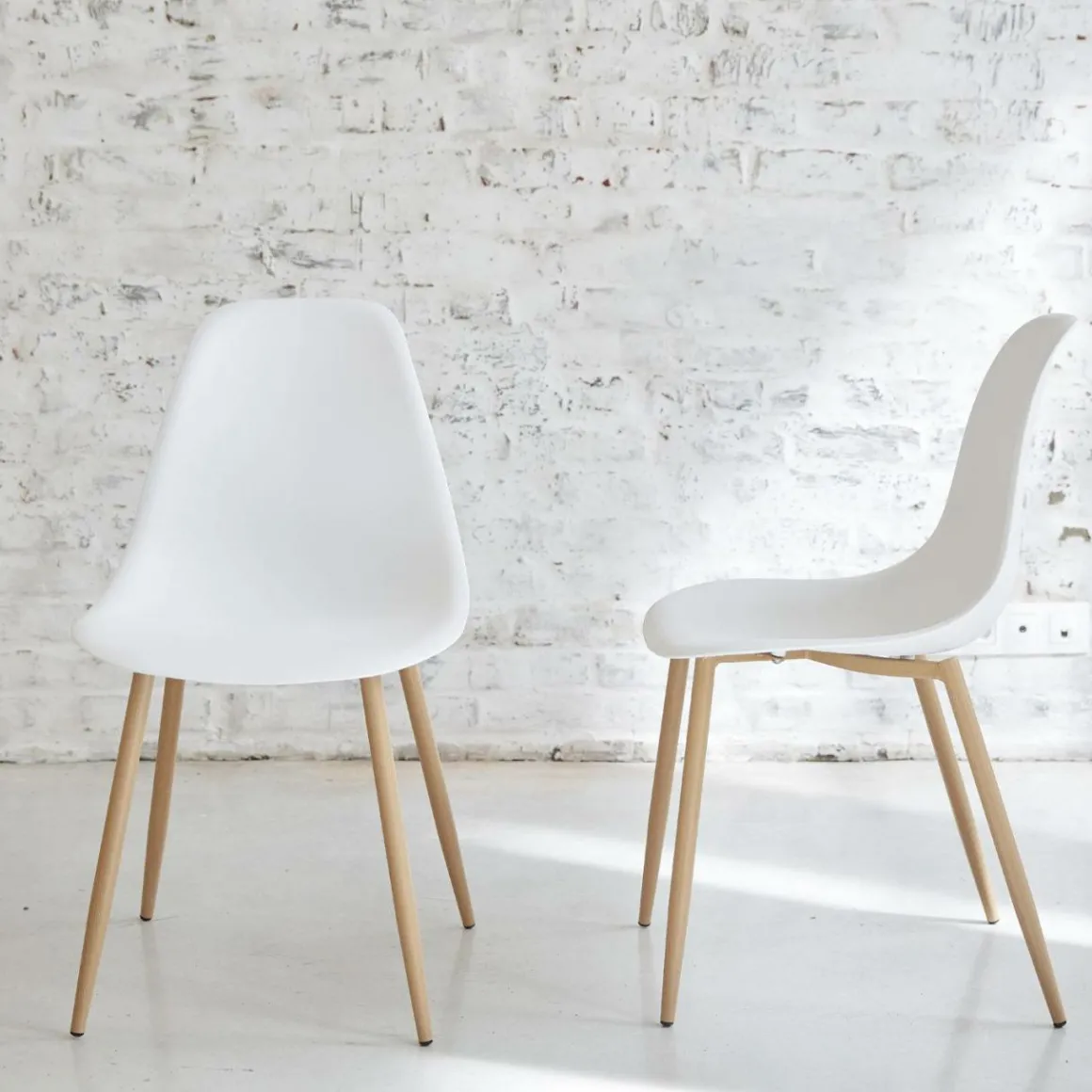 Conçues à partir de matériaux très actuels, elles disposent d’une assise très confortable en plastique et d’un piétement en métal imitation chêne. L’association entre le blanc et le bois est très équilibré et fonctionne très bien, il met en valeur une conception épurée et raffinée.