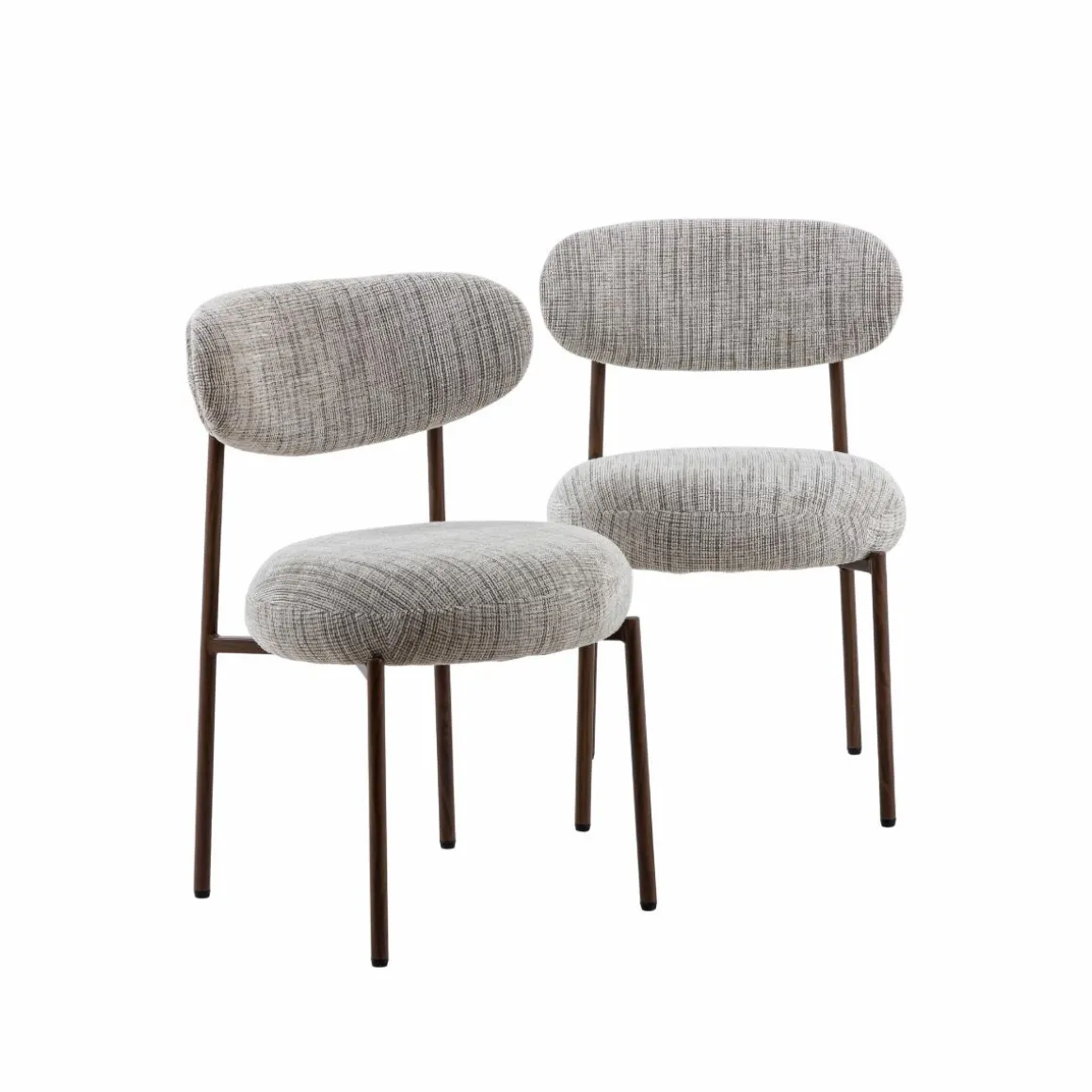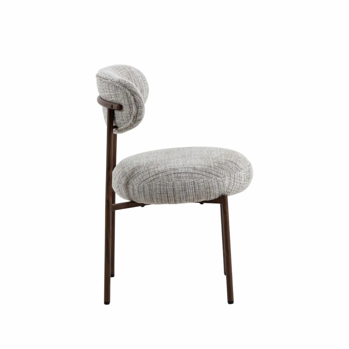 Cette chaise de la collection Janis combine confort et modernité grâce à l’alliance de matières soigneusement choisies. Son assise et son dossier rembourrés sont revêtus d’un tissu écru chiné et taupe chaleureux, qui apporte du caractère et une note conviviale à votre intérieur. Le métal effet bois utilisé en structure ajoute une touche naturelle et raffinée, créant un bel équilibre entre authenticité et design contemporain.