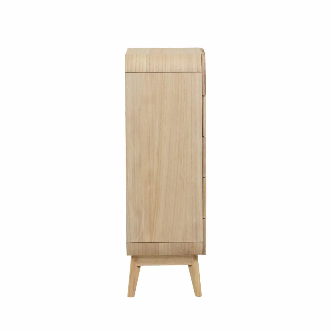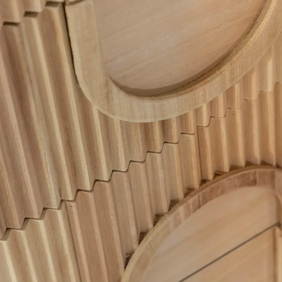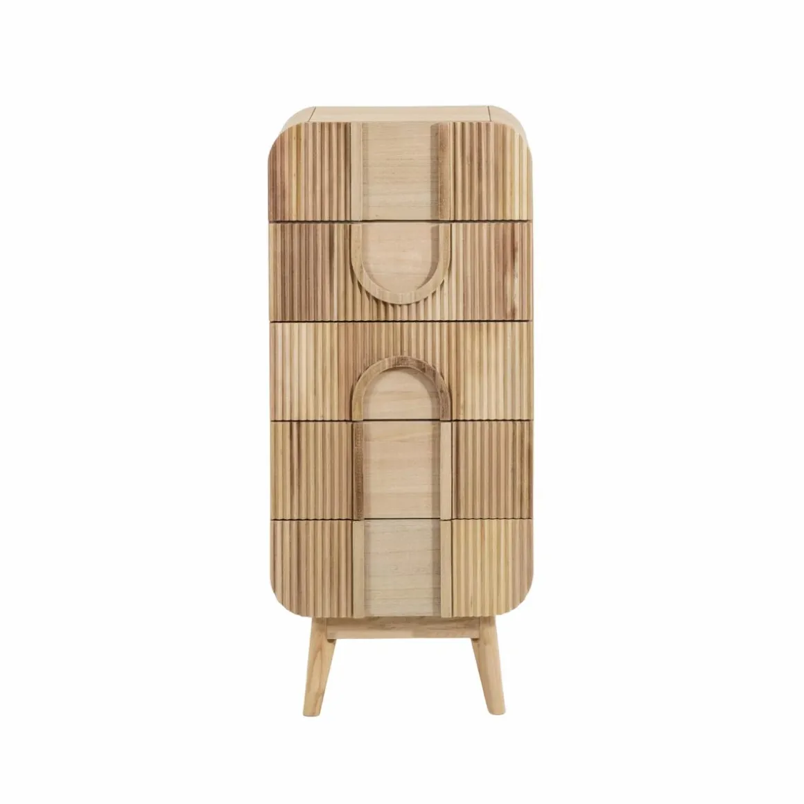Apportez du caractère et de la luminosité à votre intérieur avec le chiffonnier Nilo, une pièce au design sculptural qui reflète parfaitement l’esprit artistique de la collection. Entièrement conçu en bois de paulownia, une essence légère et naturellement claire, il illumine instantanément l’espace tout en créant une ambiance douce et apaisante.