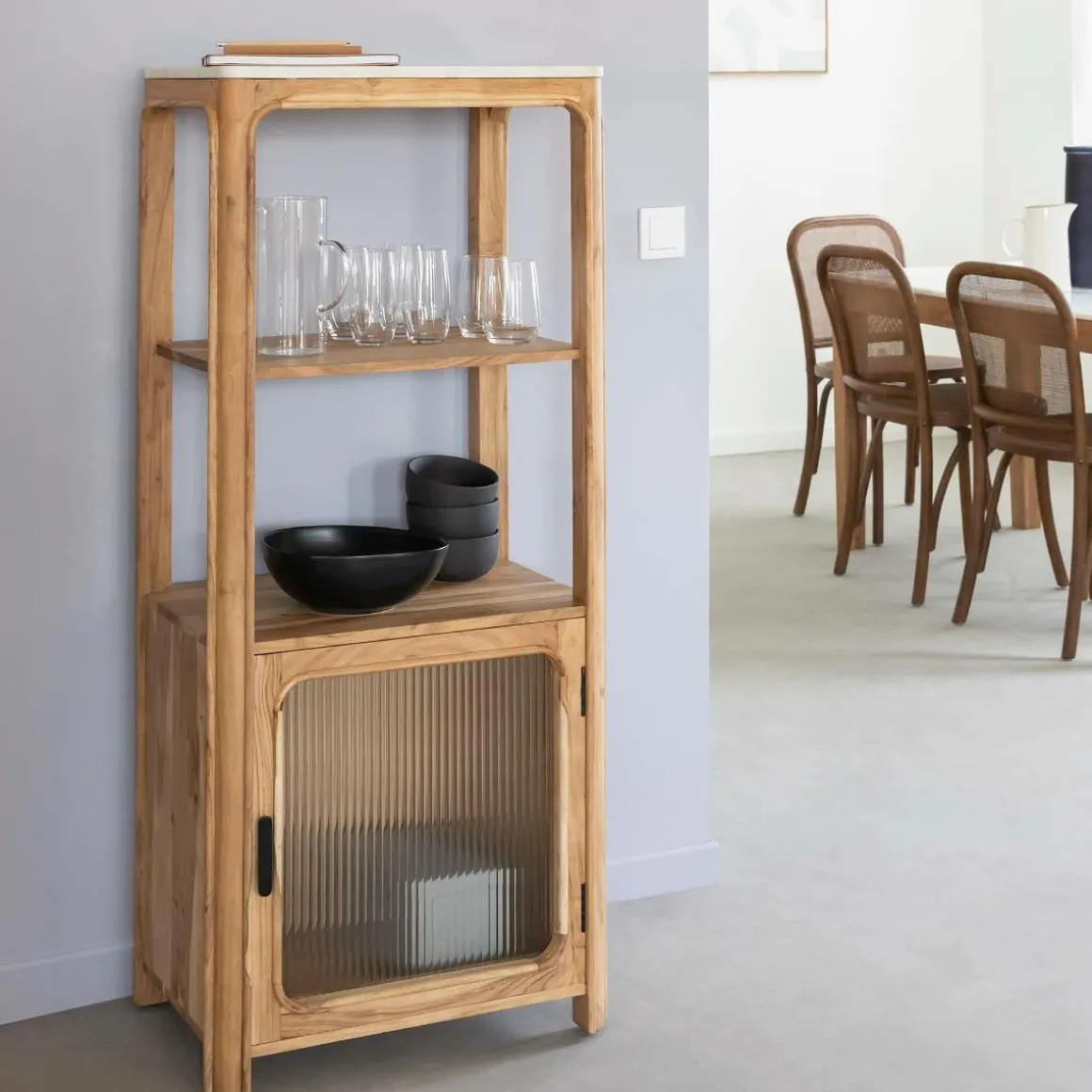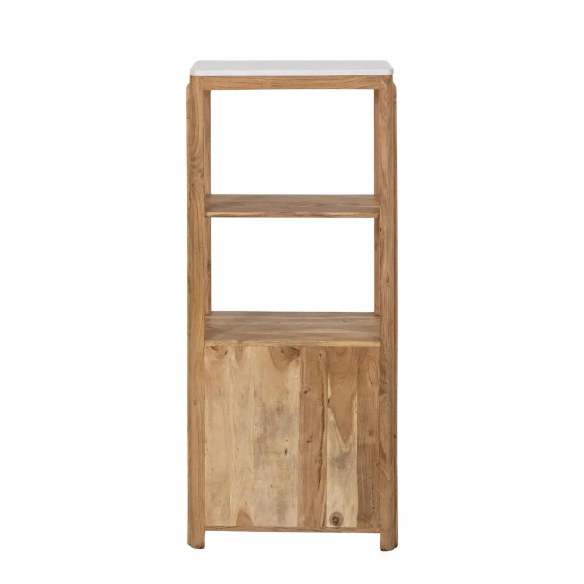 Il dispose de deux étagères ouvertes en partie haute, parfaites pour exposer vos objets déco ou accessoires du quotidien, et d’un compartiment fermé par une porte pleine en partie basse pour dissimuler ce que vous souhaitez ranger à l’abri des regards. Ce meuble s’intègre facilement dans une salle de bain, une entrée ou un coin bureau.