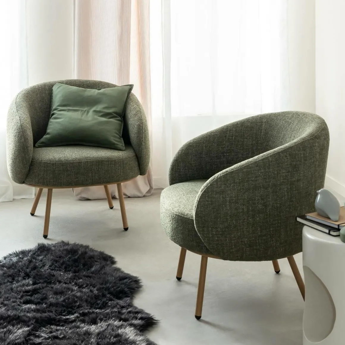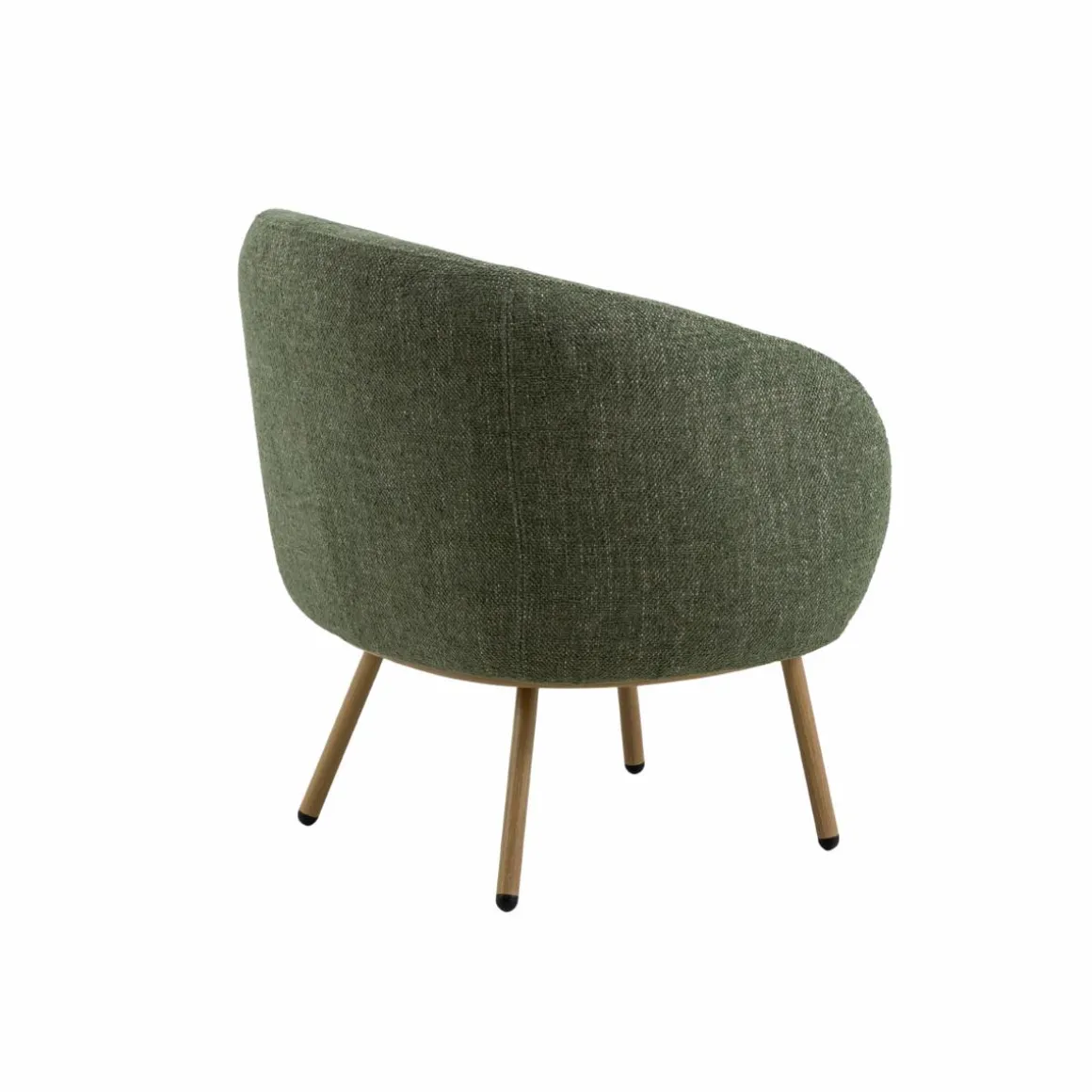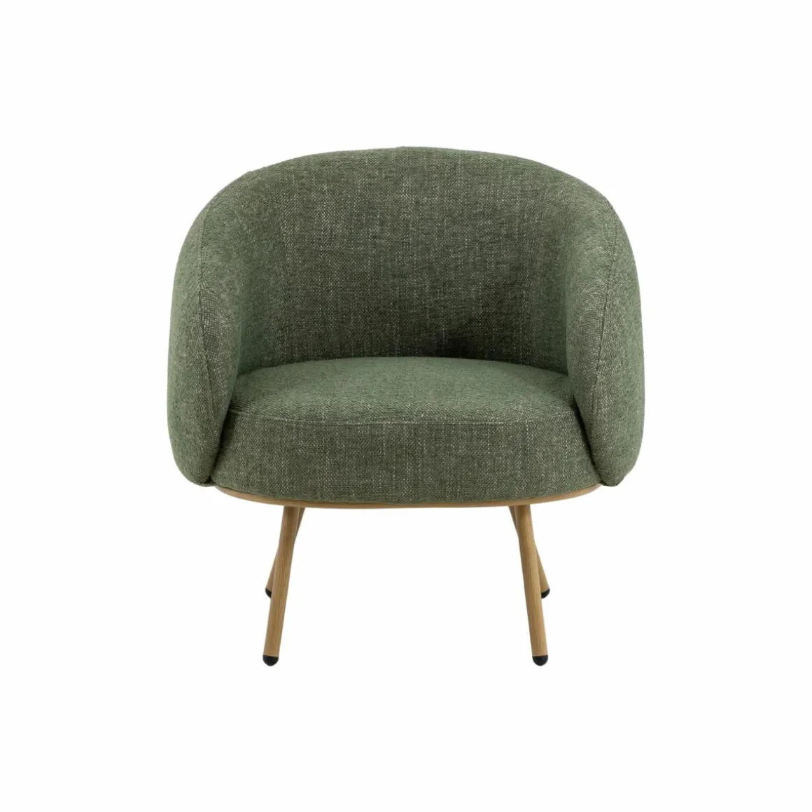Ce fauteuil de la collection Kanoa allie confort et esthétisme avec un charme intemporel. Son revêtement en tissu vert, à la fois doux et raffiné, apporte une touche authentique et élégante qui s’intègre aussi bien dans un intérieur moderne que dans une ambiance plus cosy. Sa forme arrondie et accueillante invite à la détente et crée un véritable cocon de confort.