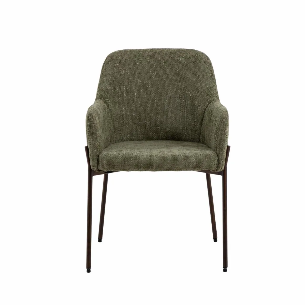 Cette chaise de la collection Aëlys séduit par son design moderne et son confort enveloppant. Revêtue d’un tissu vert raffiné, elle apporte une touche naturelle et élégante à la décoration intérieure. Son dossier haut et ses accoudoirs intégrés renforcent la sensation de confort, créant une assise idéale aussi bien pour les repas que pour les moments de travail.
