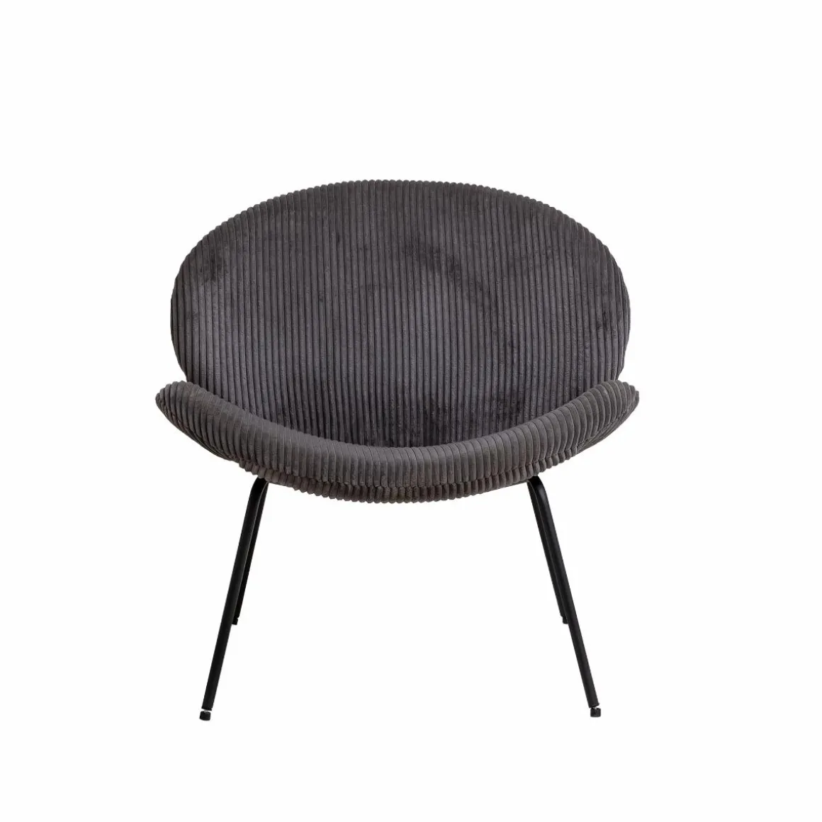 Sa structure en métal noir offre robustesse et modernité, tout en assurant une bonne stabilité. La forme ovale courbée de l’assise et du dossier permet un confort optimal. Ce fauteuil est particulièrement tendance avec sa texture en velours, un choix stylistique fort pour cette année.