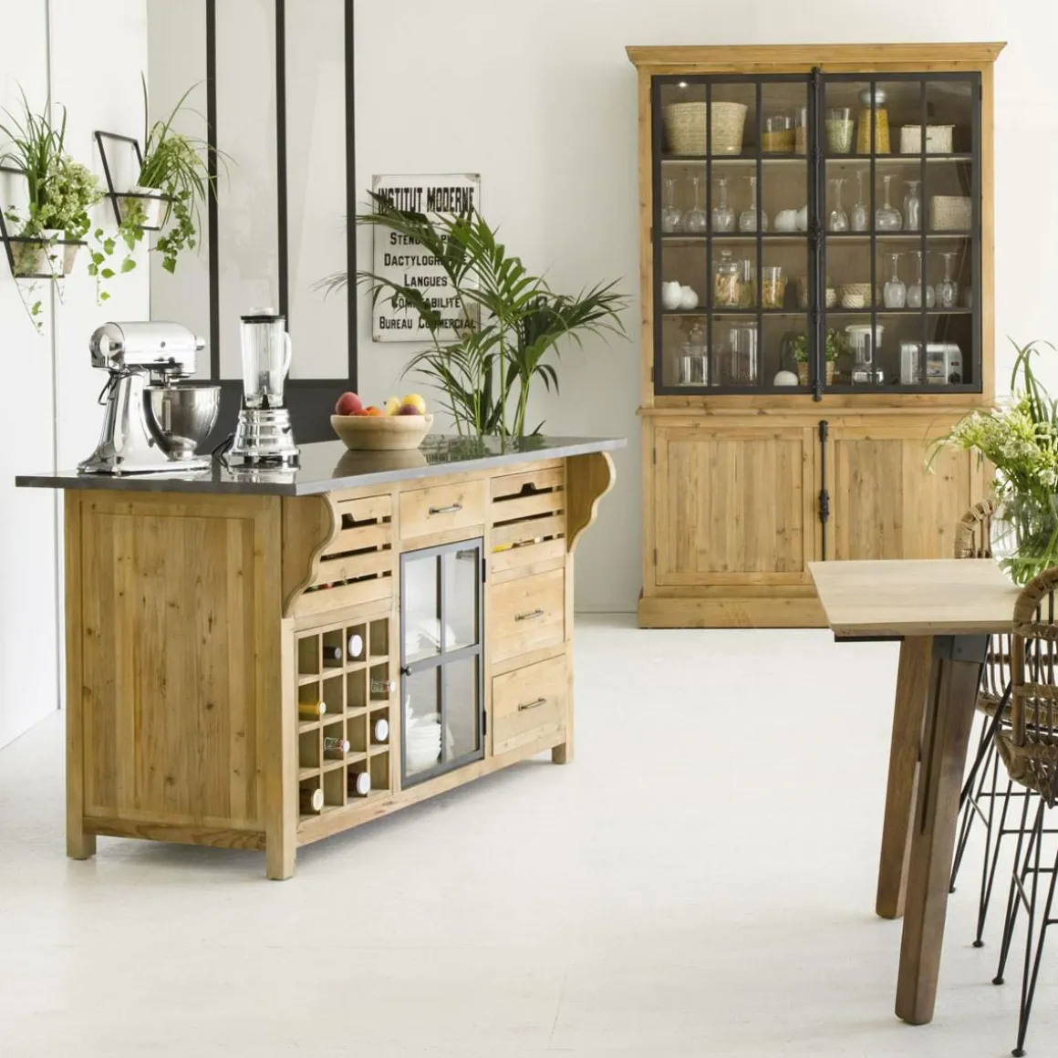 Cet îlot central bois massif comportant un range bouteille est très moderne et fonctionnel. Aux allures industrielles, il dispose de nombreux rangements qui faciliteront votre quotidien. Vous allez tout autant apprécier sa grande praticité que son charme intemporel.