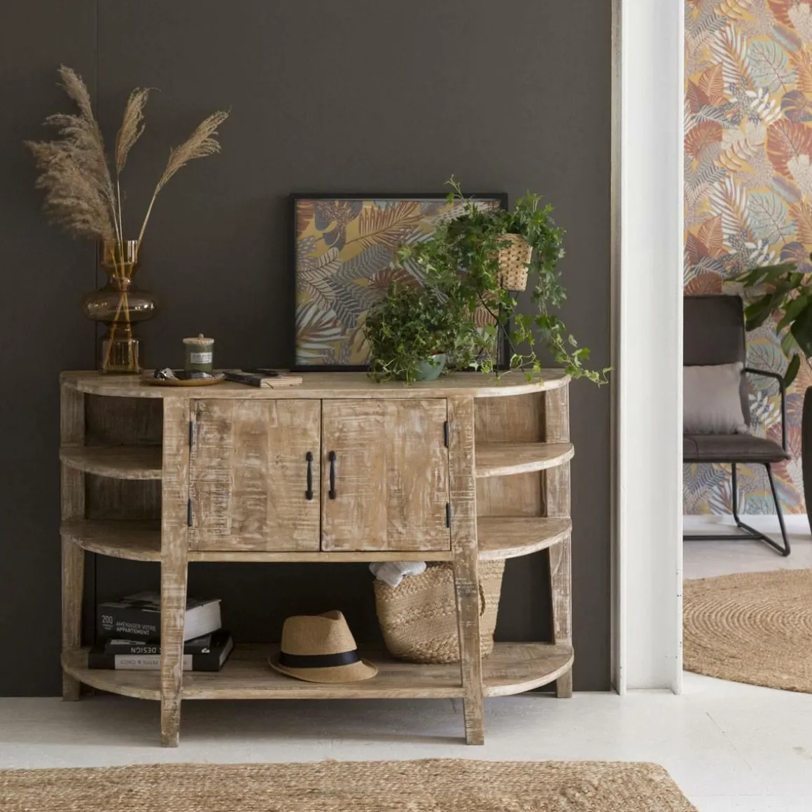 Meuble sous vasque en bois de manguier blanchi Sienna