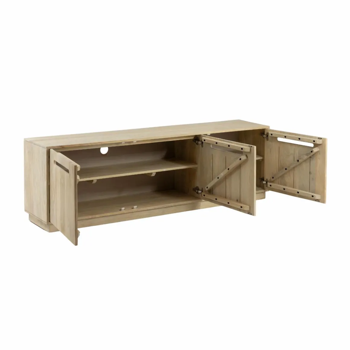 Pratique et fonctionnel, il est doté de trois portes pleines qui offrent de généreux espaces de rangement pour organiser vos appareils multimédias, vos accessoires ou encore vos objets du quotidien. Sa structure solide et son allure intemporelle en font une pièce pensée pour vous accompagner dans le temps, qui allie utilité et esthétisme.