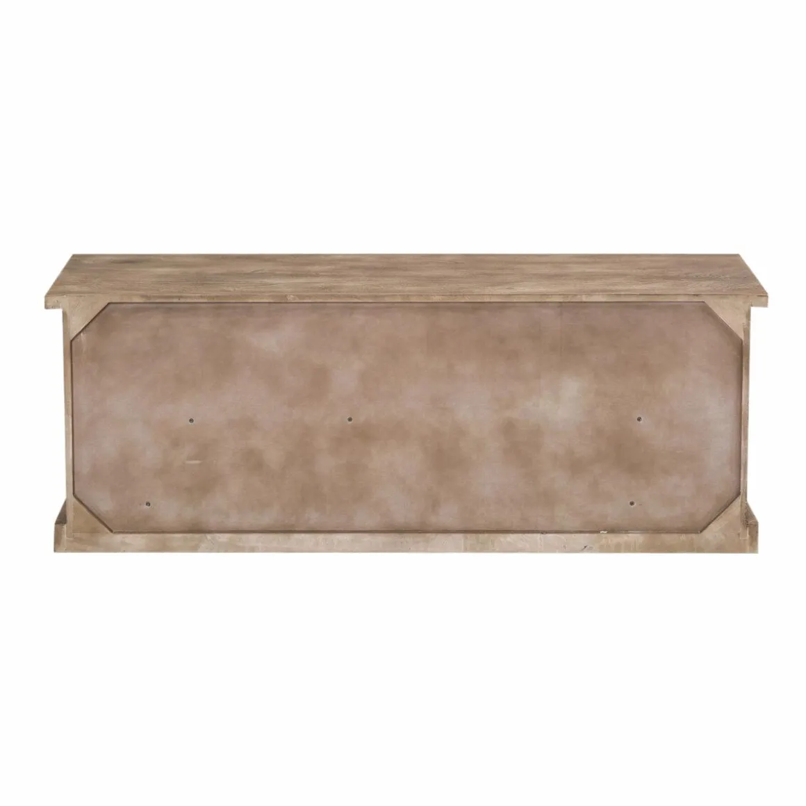 Son bois massif de manguier est très résistant. Il dispose d’une finition brossée, ce bois donne un aspect authentique et vintage au meuble. Le métal noir souligne quant à lui les traits de ce meuble télé, mettant en valeur son design épuré.