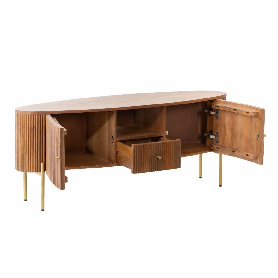 Le meuble TV Cecile allie luxe et style. Fabriqué en bois de manguier exquis, ce meuble contemporain présente une esthétique chaleureuse et élégante, parfaite pour une maison stylée.