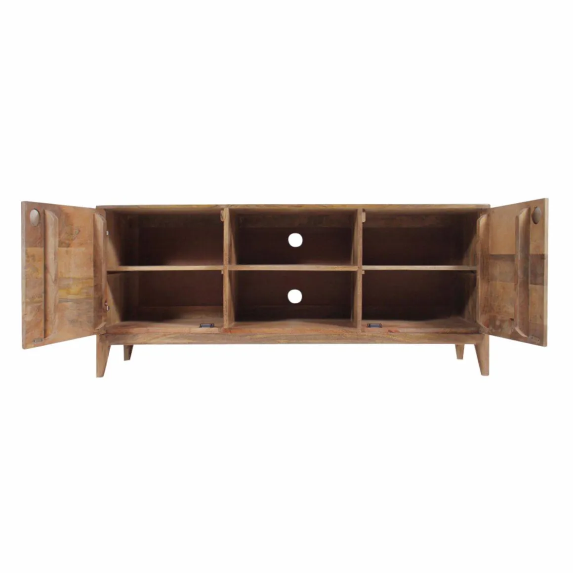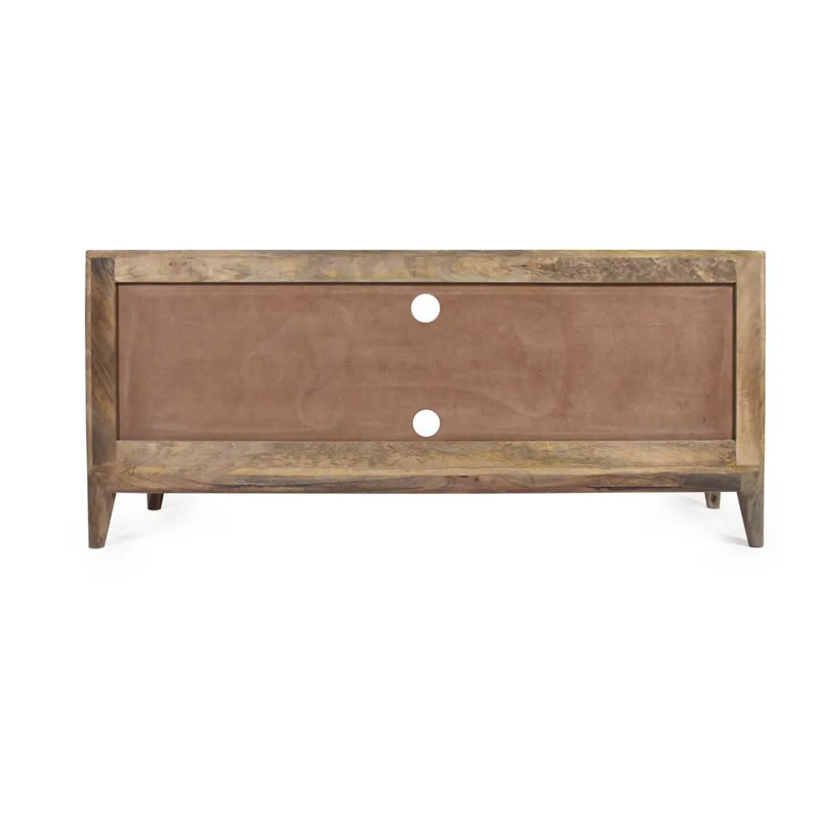 C’est tout naturellement que ce meuble tv en bois s’intégrera dans votre intérieur. La douceur de ses lignes et de ses nuances en fait un meuble passe partout qui peut autant correspondre à un intérieur industriel que scandinave. On aime le piétement compas de ce meuble qui rappelle les codes rétro.