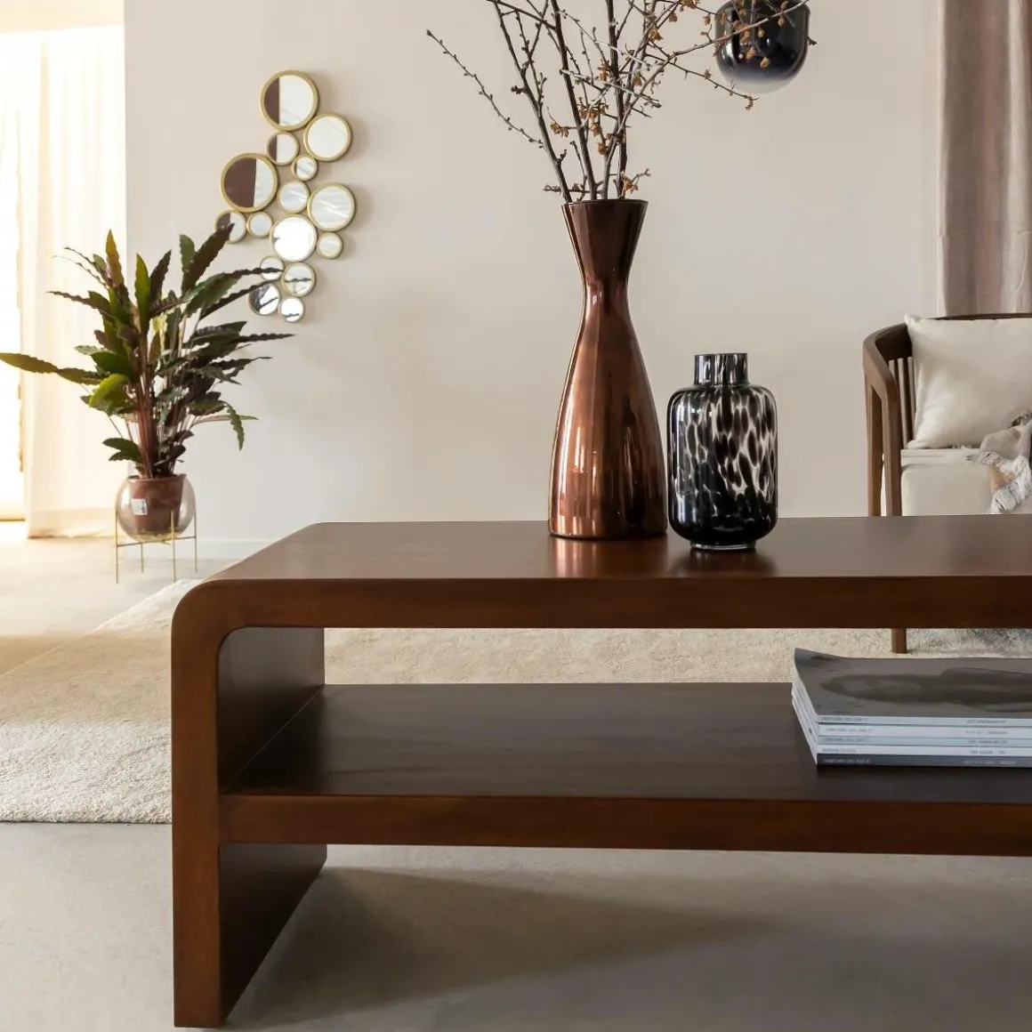 Le meuble TV Lior en bois de manguier foncé est une pièce maîtresse qui combine harmonieusement style contemporain et une touche vintage, grâce à sa couleur foncée et son allure intemporelle.