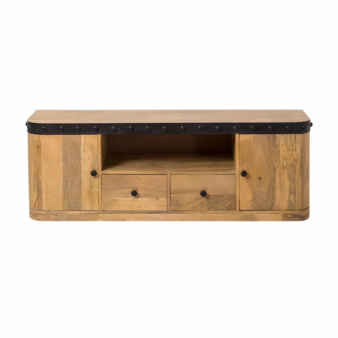 Ce meuble TV industriel sera votre allié pour décorer et surtout pour stocker. Son réel plus est l’originalité de la barre en métal qui l’orne. Son bois massif de manguier est très résistant. De plus, ce bois donne un aspect brut et authentique au meuble. Le métal souligne bien les traits de ce meuble en mettant en valeur son design épuré.