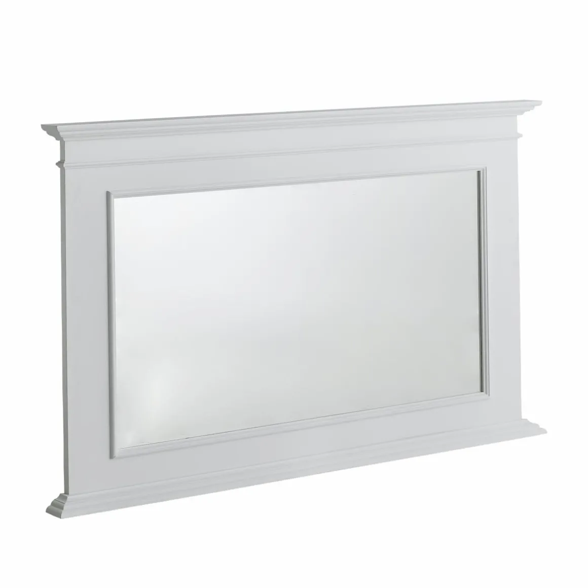 Magnifique miroir grand modèle en pin massif, patine antiquaire blanche, de 90 x 150 cm. Il trouvera sa place aussi bien dans votre salle de bain que dans votre salon, chambre. Modèle traditionnel de qualité en pin massif neuf.
