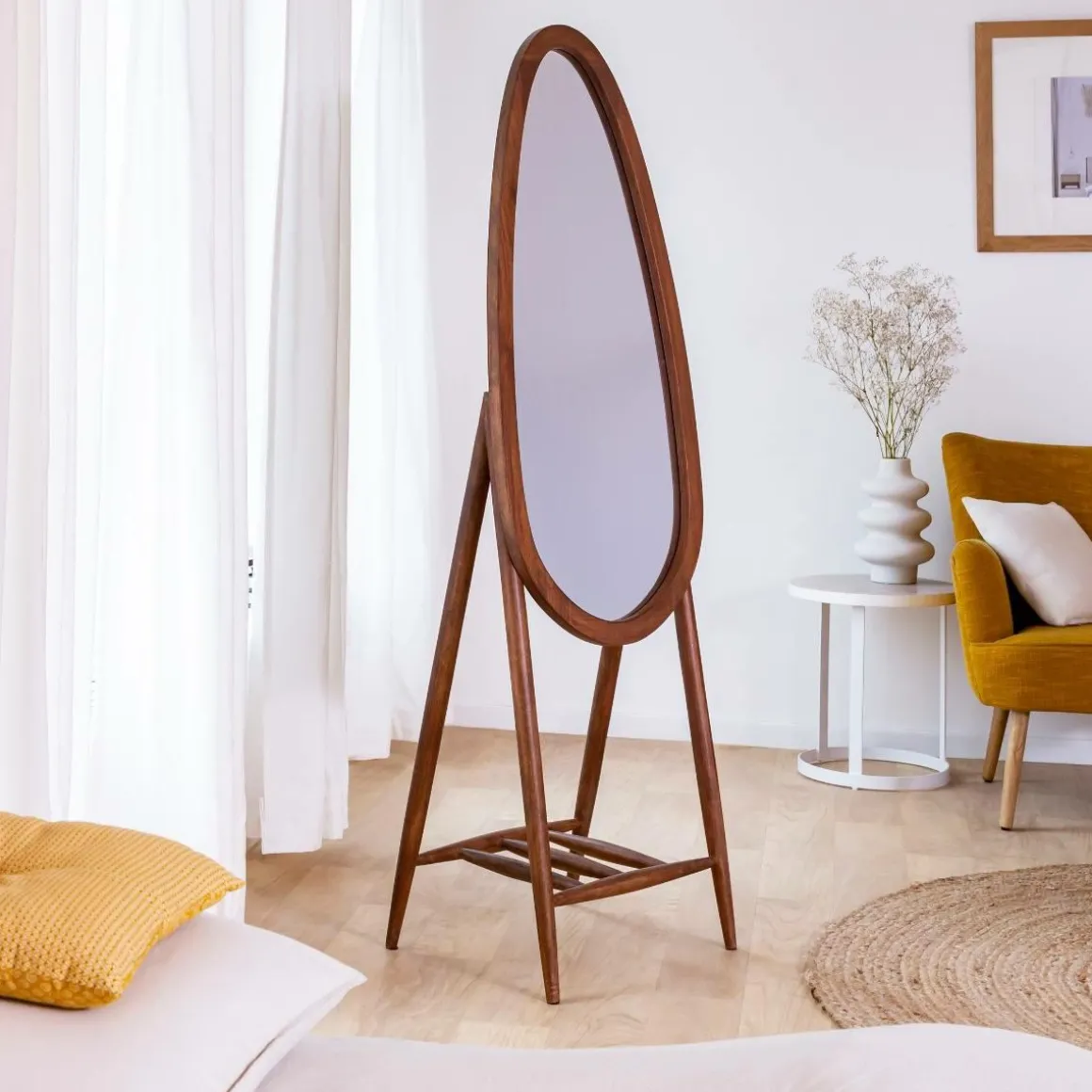 Voici le Miroir Joyce, le nouveau venu dans la famille de la décoration d’intérieur. Fabriqué en bois de manguier robuste, ce miroir fera sensation dans n’importe quelle pièce.