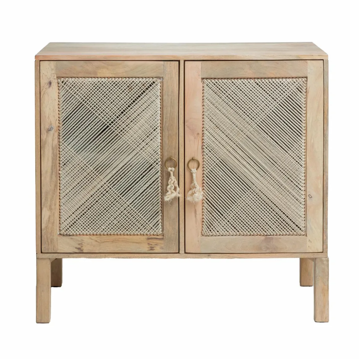 Grâce à sa matière en bois de manguier, ce buffet apportera à votre salon un côté chaleureux et moderne. En plus d’apporter une touche de modernité à votre salon, cette pièce vous propose des caractéristiques pratiques. Avec sa hauteur de 83 cm et sa largeur de 90cm, il saura trouvé sa place dans n’importe quelle pièce de votre maison. Ce meuble vous propose un bel espace de stockage, avec deux étagères amovibles derrière ses deux portes aimantées, originales en corde.