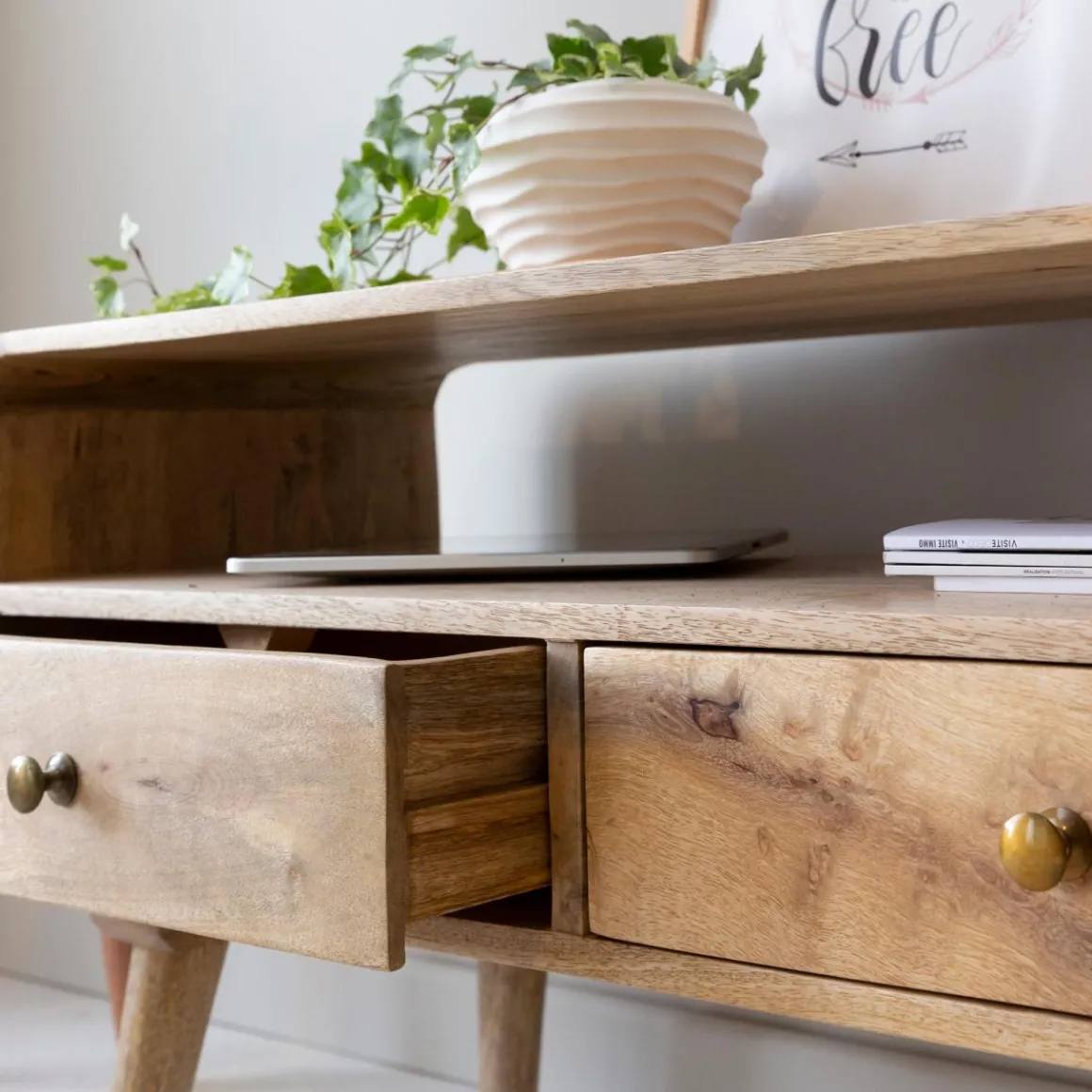 Ses petites dimensions sont parfaites pour s’intégrer dans un petit appartement, dans une chambre ou dans un coin restreint. Quel que soit l’endroit où il sera placé, il fera bel effet. Robuste, le bois de manguier lui confère une excellente solidité et une très bonne tenue dans le temps.