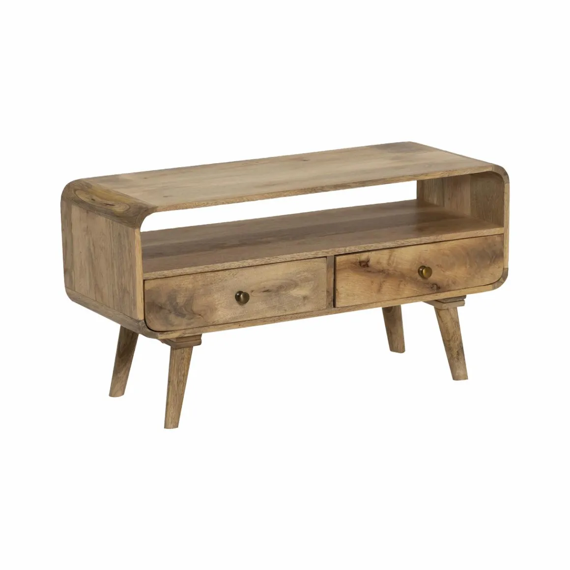 Amateurs de mobilier scandinave, ce meuble TV est fait pour vous ! On retrouve du bois massif, des nuances lumineuses et un piétement compas ! What else ?