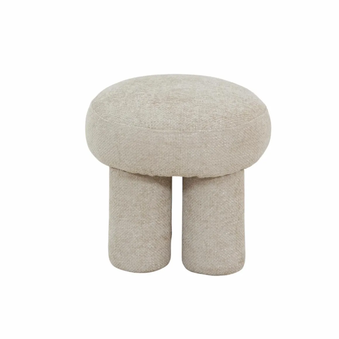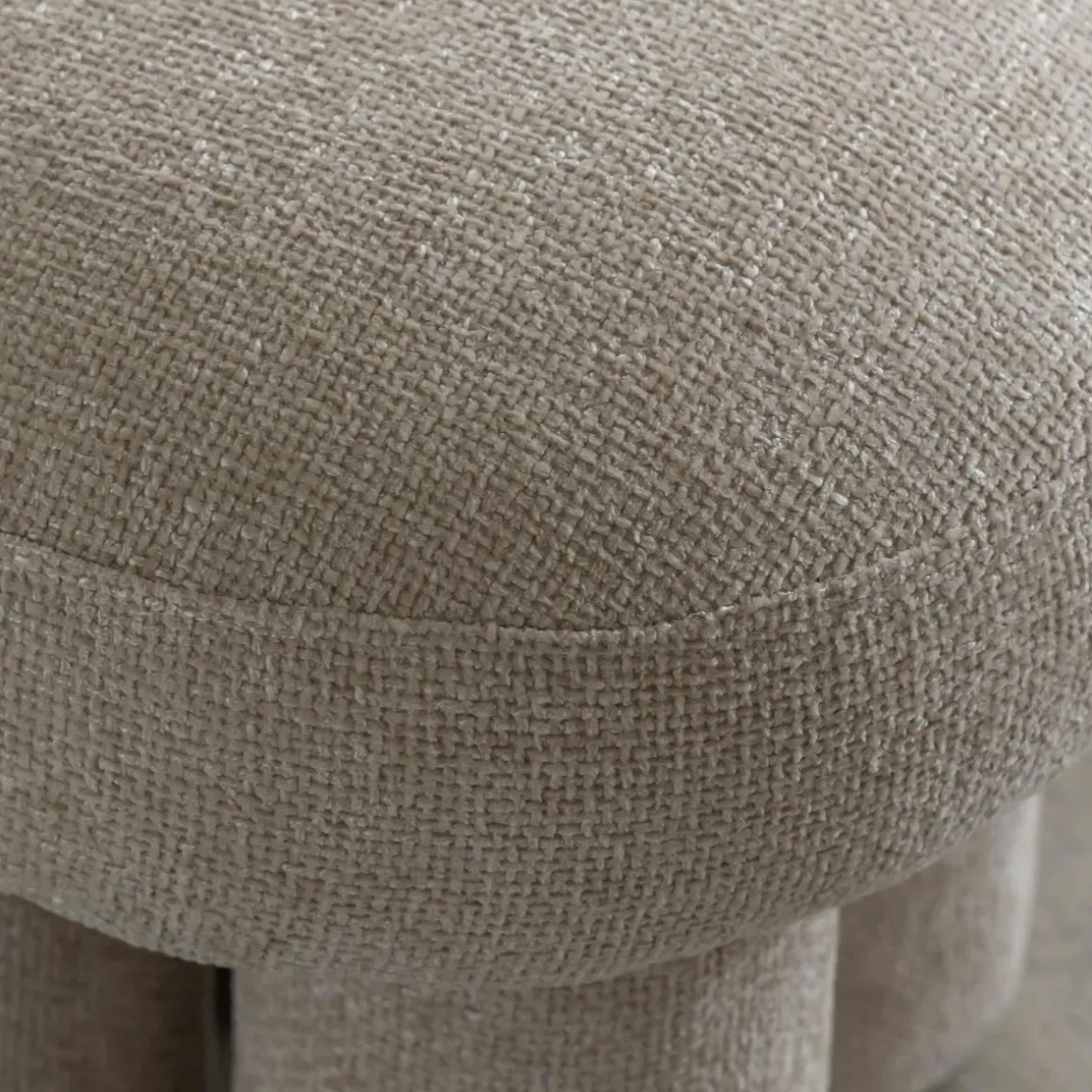 Ce petit tabouret en tissu écru attire le regard par son design original et arrondi. Son revêtement doux et texturé apporte une touche cosy et élégante, tandis que sa forme sculpturale lui donne une allure moderne et ludique. Compact et plein de caractère, il s’intègre facilement dans différents styles d’intérieur, du contemporain au bohème.