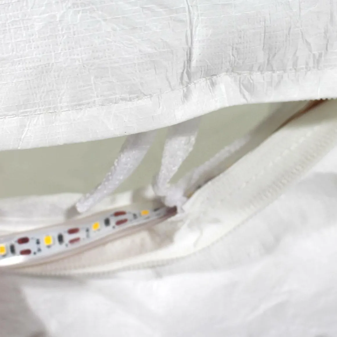 Vendu en kit, il est à monter soi même. Vous recevrez la structure en tissu, des sachets gonflables, ainsi qu’une pompe et des LED. De cette façon, il vous faudra remplir la structure en tissu de petits sachets gonflables afin de bomber votre assise. Puis de disposer les LED. Très simple et rapide.