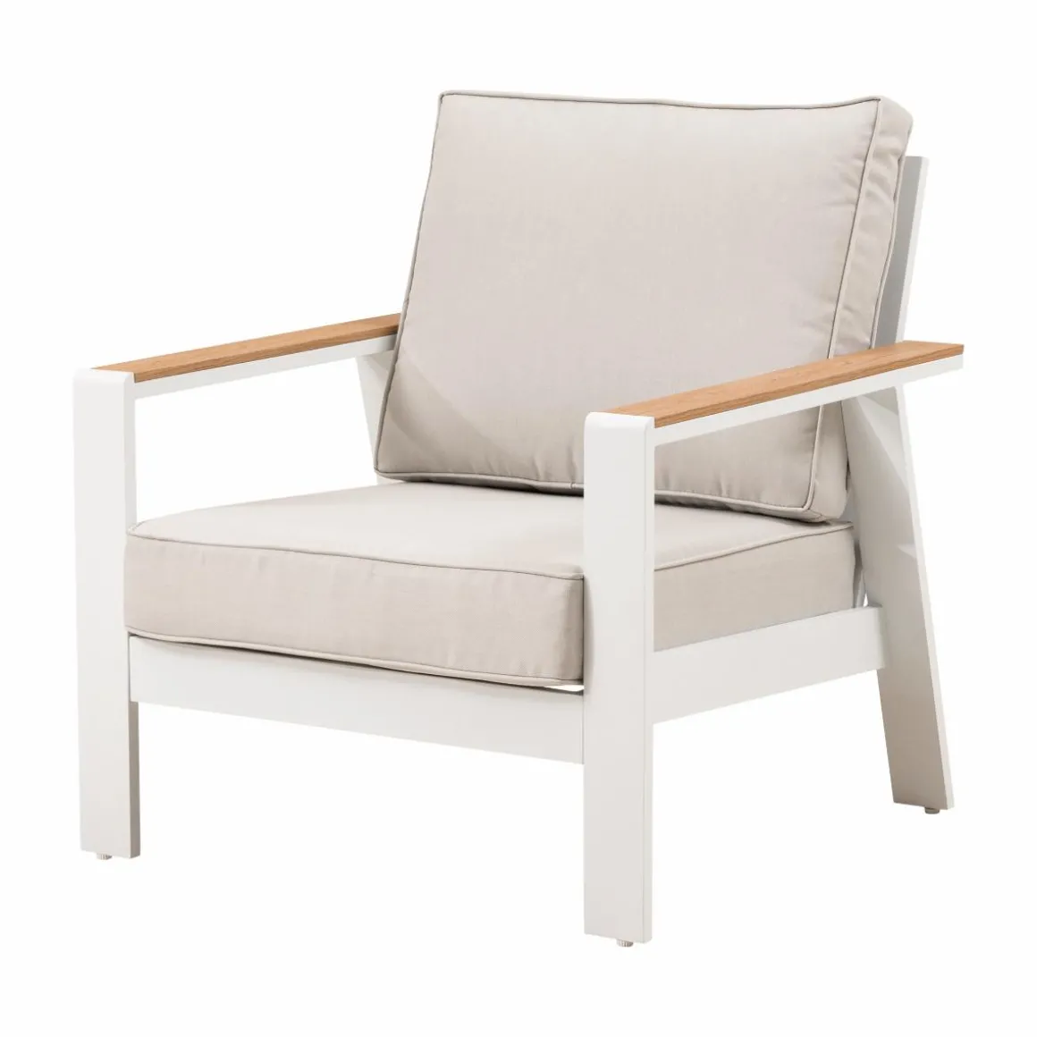 Le salon de jardin Orion combine élégance et confort avec sa structure en aluminium de couleur crème.