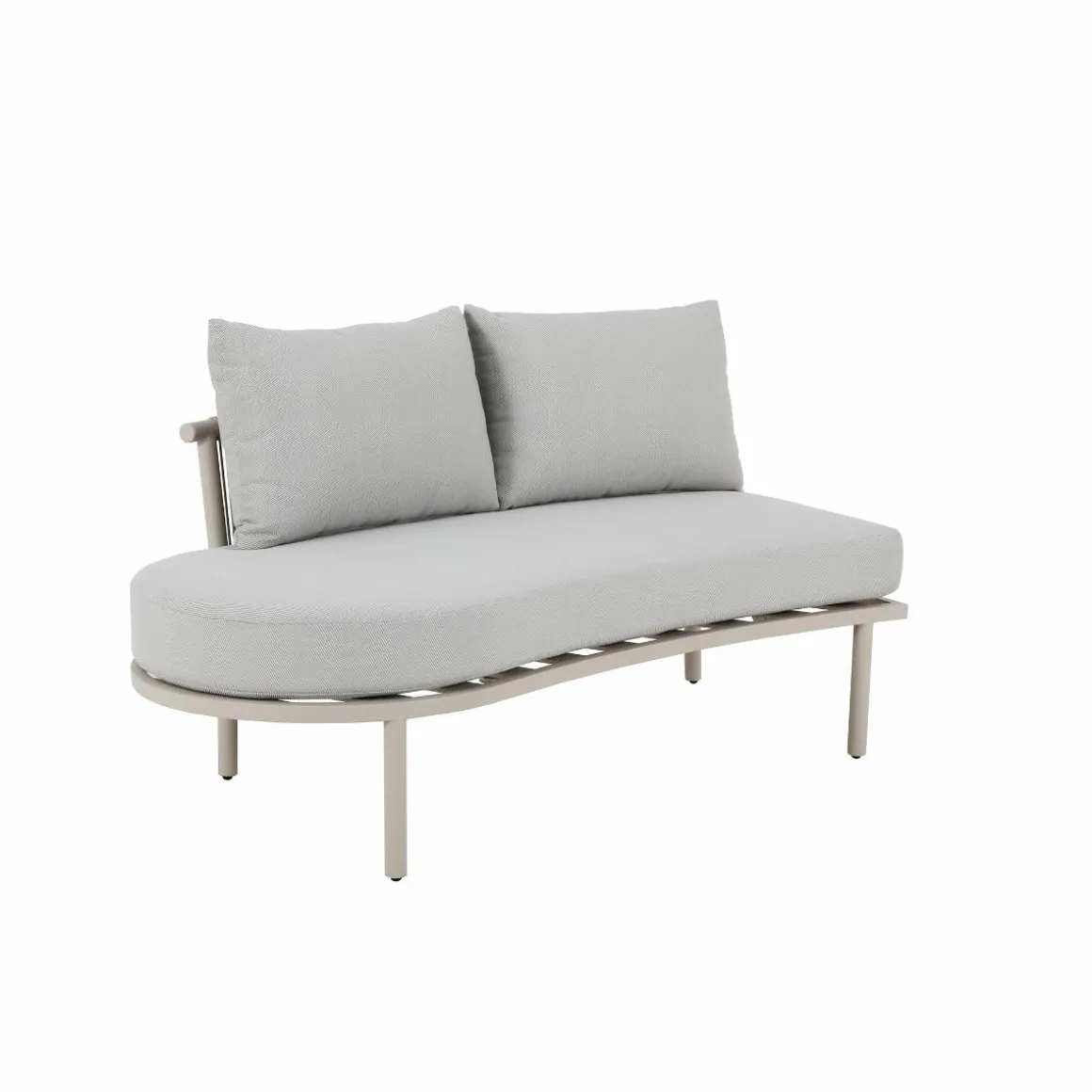 Le salon de jardin Zion allie style et confort avec sa table et son canapé en aluminium taupe, au design en forme organique, parfait pour cette année 2025. Le dossier du canapé en corde ajoute une touche subtile et design, tandis que les coussins offrent un confort optimal pour des moments de détente.