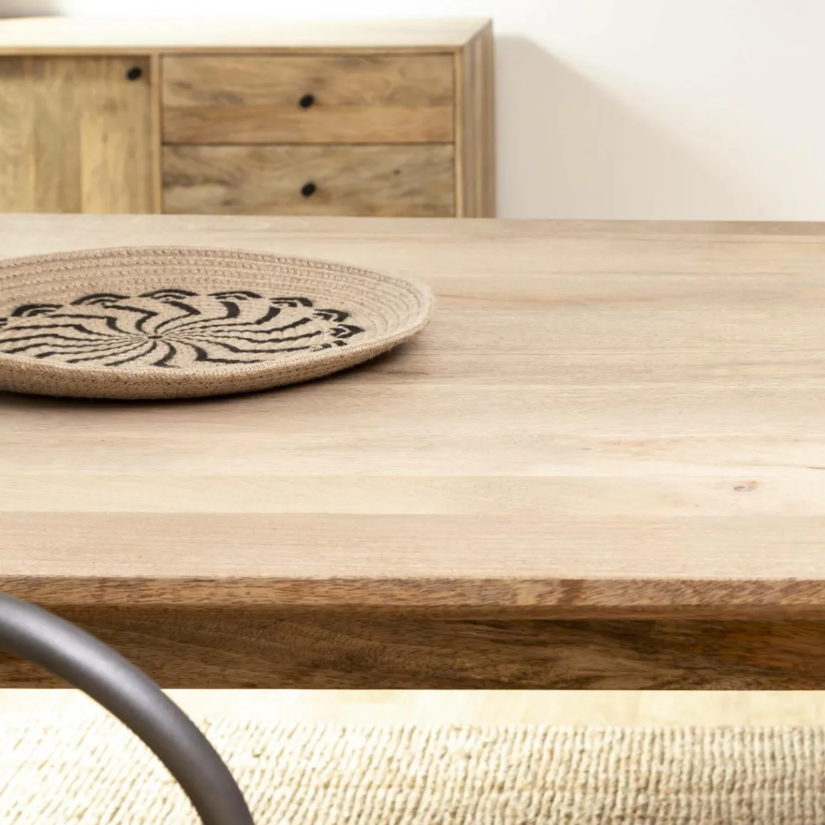 On n’hésite pas à l’accompagner de chaises en velours pour un rendu scandinave, ou encore de chaise en cuir roux pour un effet plus industriel ! Le bois de manguier est un bois très résistant qui vous apportera robustesse et résistance !