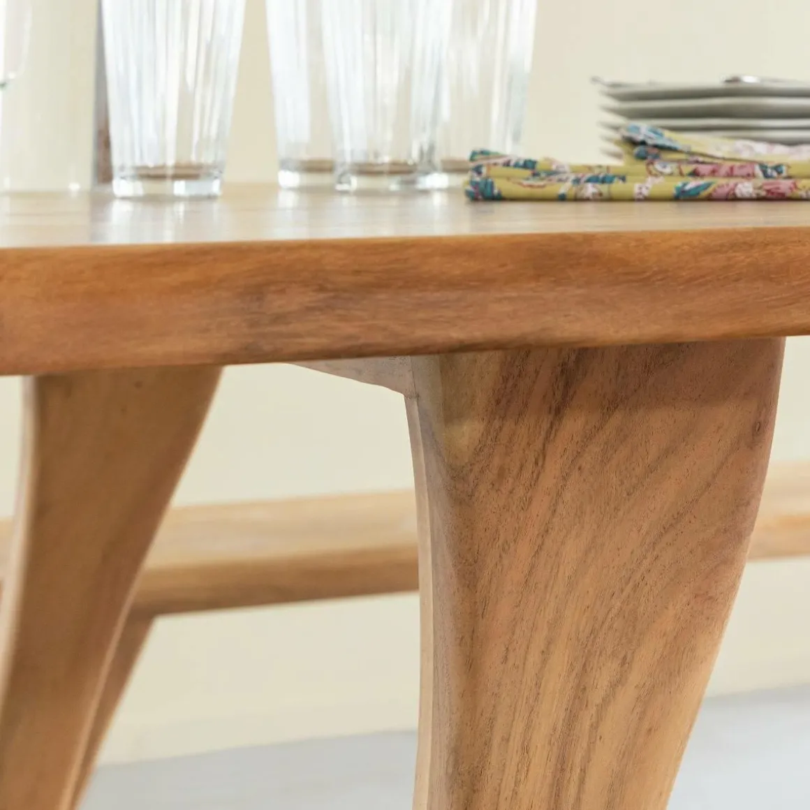 Ce mobilier au design épuré met en valeur la noblesse du bois et la qualité artisanale de fabrication. Les lignes sobres et la finition chaleureuse s’intègrent harmonieusement dans des intérieurs scandinaves, bohèmes ou authentiques. Grâce à ses dimensions généreuses, la table haute Orane (L182 x P91 x H91 cm) permet d’accueillir confortablement jusqu’à 6 personnes. Les deux bancs (L170 x P33 x H60 cm chacun) se glissent astucieusement sous la table pour un gain de place optimal.