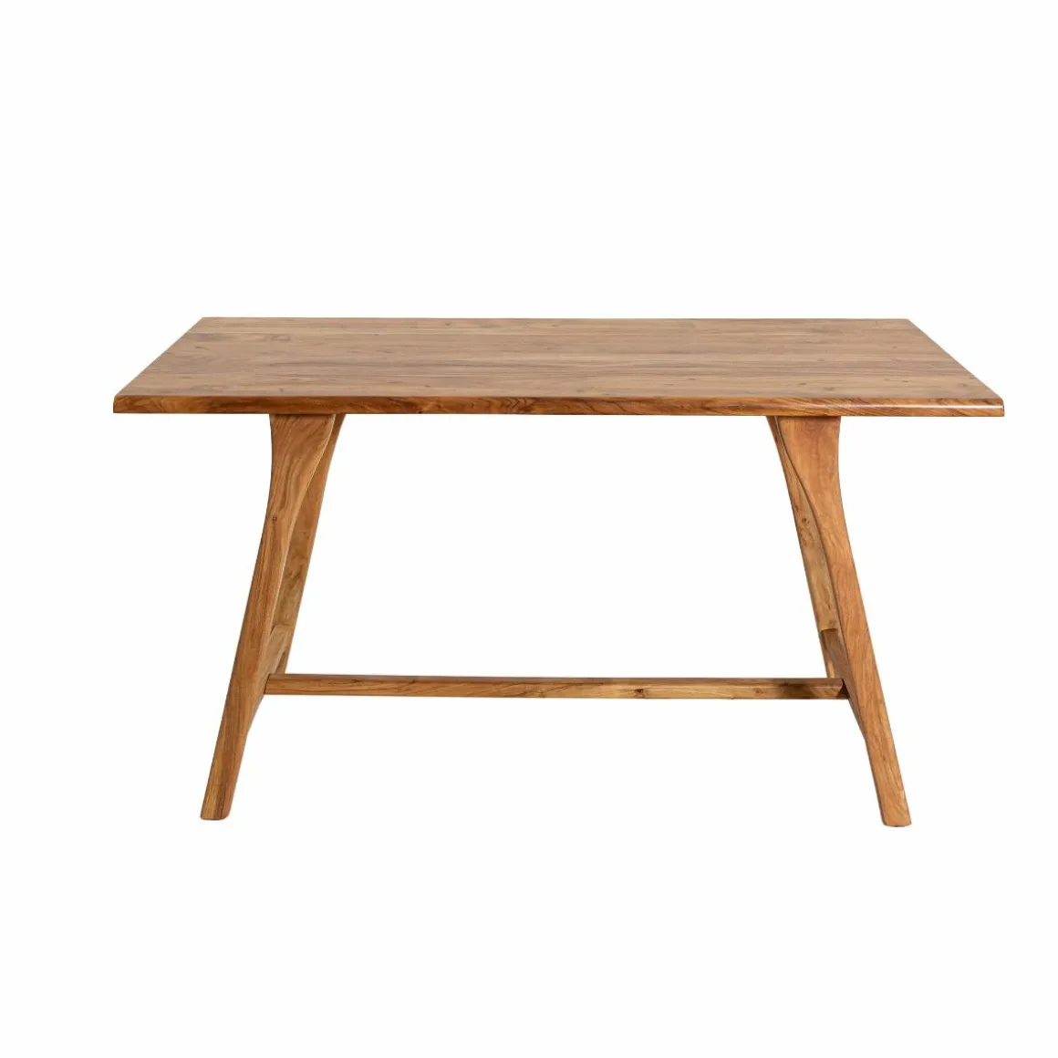 Apportez chaleur, caractère et convivialité à votre salle à manger ou votre cuisine avec ce lot comprenant une table haute Orane et deux bancs assortis. Confectionné en bois d’acacia massif, chaque élément affiche une teinte miel élégante et un veinage unique qui confère une véritable âme à l’ensemble.