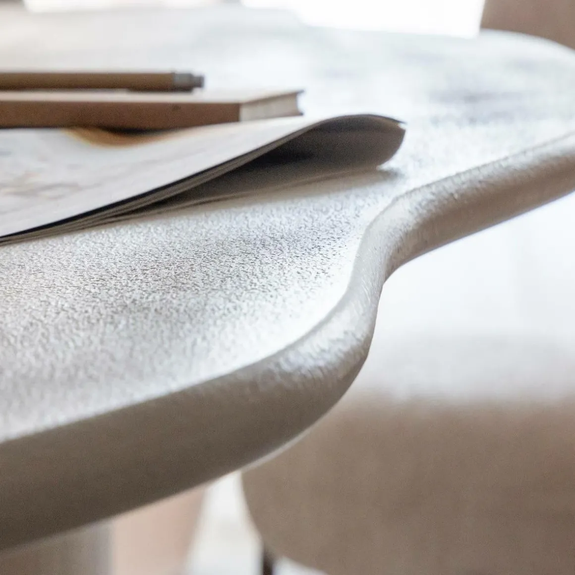 Cette table à manger en MDF avec effet béton blanc séduit par son design contemporain et minimaliste. Son plateau généreux repose sur un pied central massif, offrant à la fois stabilité et élégance. Avec sa finition effet crépi, elle apporte une touche urbaine et moderne qui s’intègre parfaitement aussi bien dans une salle à manger épurée que dans un intérieur plus audacieux.