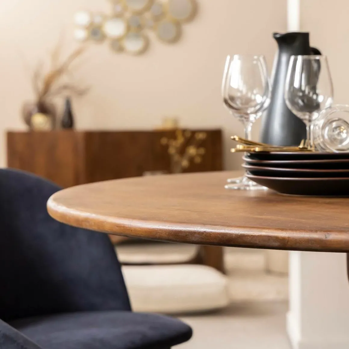 La Table à manger ronde en bois de manguier Zola ajoute une touche de sophistication contemporaine à votre salle à manger. Sa surface en bois de manguier, robuste et naturelle, confère à cette pièce une chaleur et une authenticité inégalées.