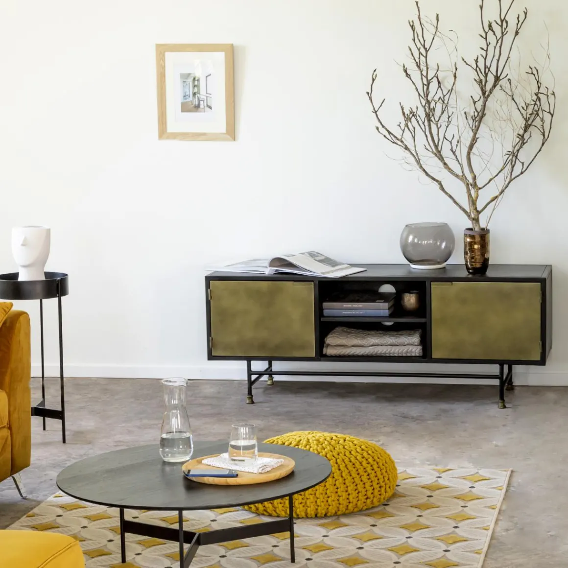 Son plateau généreux offre un espace pratique pour accueillir télécommandes, livres ou décorations, tandis que son piètement en métal noir assure stabilité et robustesse. Pratique et esthétique, cette table basse devient un véritable atout pour rendre votre salon chaleureux et convivial.