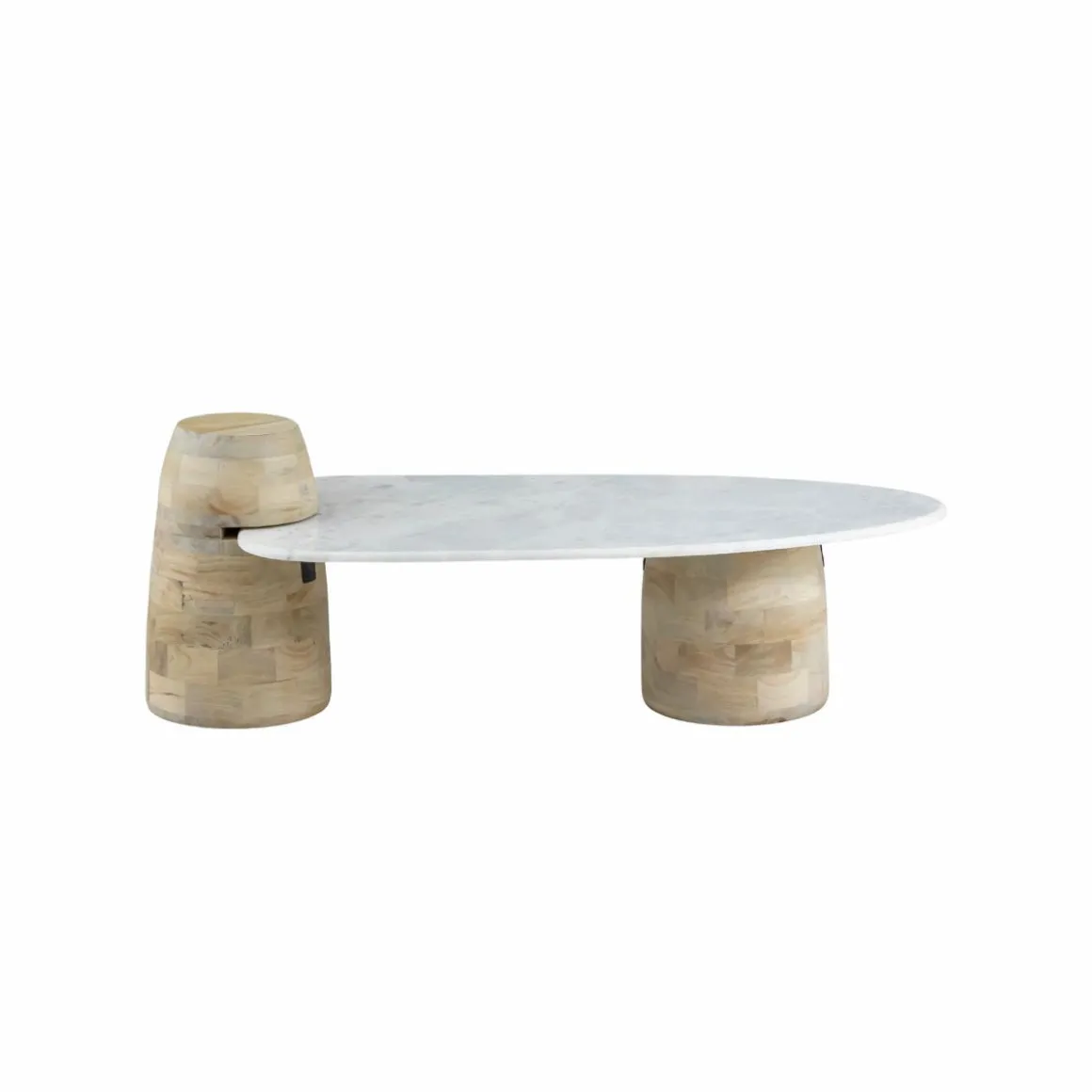 Cette table basse de la collection Moana se distingue par son design audacieux et l’alliance raffinée de matériaux nobles. Son plateau en marbre blanc, élégant et lumineux, apporte une touche sophistiquée et intemporelle, tandis que ses pieds massifs en bois de manguier offrent chaleur et authenticité. Ensemble, ils forment une pièce à la fois moderne et originale, qui attire le regard et structure l’espace.