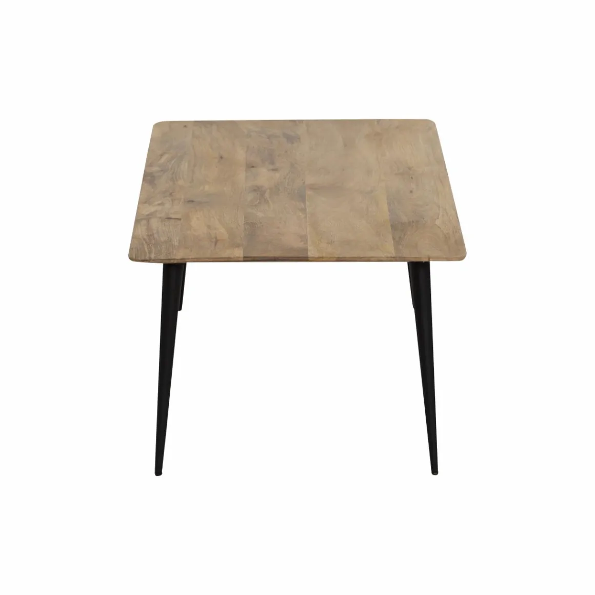 Niveau conception, nous avons choisi d’assembler le bois de manguier et le métal de manière légère, de manière subtile. Le design est linéaire, les traits sont fins, l’ensemble est très épuré. Cette table basse est l’accessoire parfait pour s’essayer à la tendance industrielle.