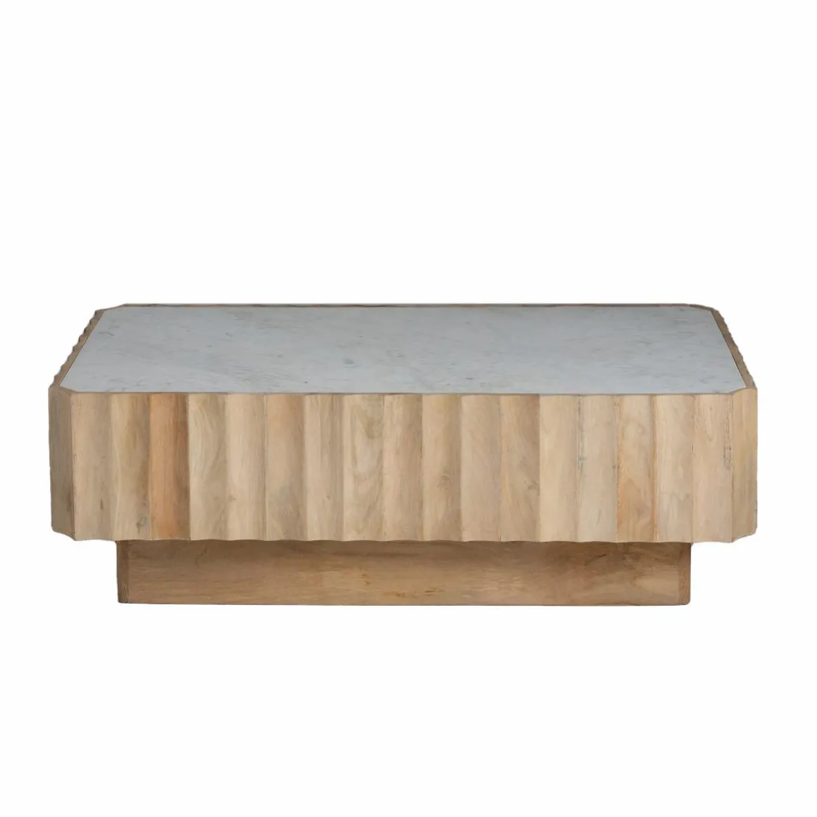 Moderne, esthétique et conviviale, cette table basse a bien des atouts, si ce n’est tous les atouts. En toute objectivité 😉 Vous ne nous croyez pas ? Allez, on vous les liste : On aime beaucoup le socle qui apporte beaucoup de légèreté et d’élégance à la table. On adore le contour du plateau, son effet sculpté est très tendance et est bourré de charme et d’originalité. Enfin, est-ce la peine de rappeler que l’association entre le marbre et le bois fonctionne à merveille ? Convaincu(e)? Et sinon, côté conception, on a choisi le bois de manguier. Une valeur sûre, aussi bien pour sa tenue dans le temps que pour sa qualité.