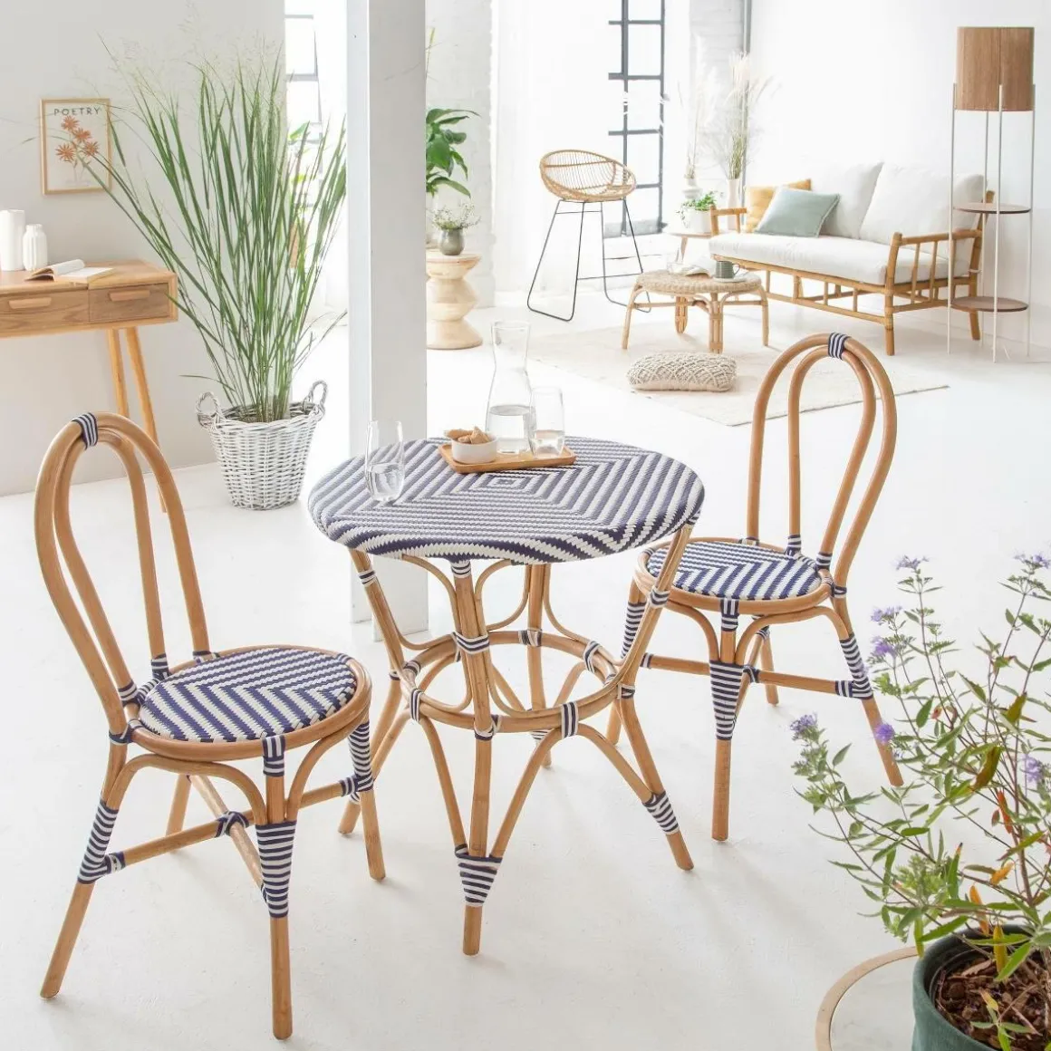 Si vous êtes à la recherche d’un objet intemporel pour relier votre espace de vie, la table bistro Elynne est la solution idéale ! Avec son décor d’inspiration vintage, sa structure classique en rotin et son plateau en plastique tressé bleu et blanc, vous aurez l’impression d’avoir remonté le temps.