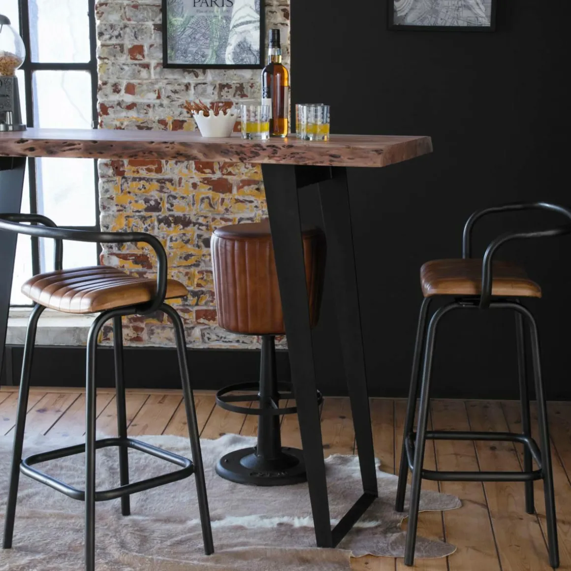 Cette table mange debout bois aux dimensions généreuses vous permettra d’accueillir aisément 6 tabourets de bar. Idéale pour aménager un coin repas dans une cuisine, elle convient également pour rendre plus agréable un coin bibliothèque ou bar dans une maison familiale. Ses pieds métalliques asymétriques, qui donnent à la table un style très design, laissent une place optimale pour les grandes jambes. Son magnifique plateau en acacia aux contours irréguliers lui donne un aspect naturel vraiment unique ; chaque plateau étant fait à la main. La couleur oranger du bois d’acacia apportera une touche de chaleur à votre intérieur.