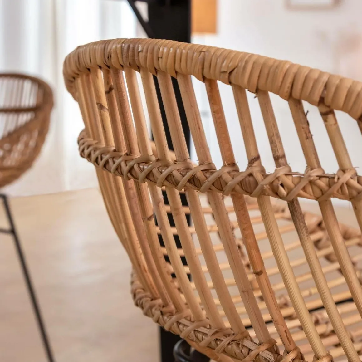 Le tabouret de bar Calvi, chic et élégant, fera sensation dans votre intérieur. Cet article luxueux ne manquera pas de se démarquer avec sa structure en métal noir, son assise ronde en rotin et son design captivant de style bohème.