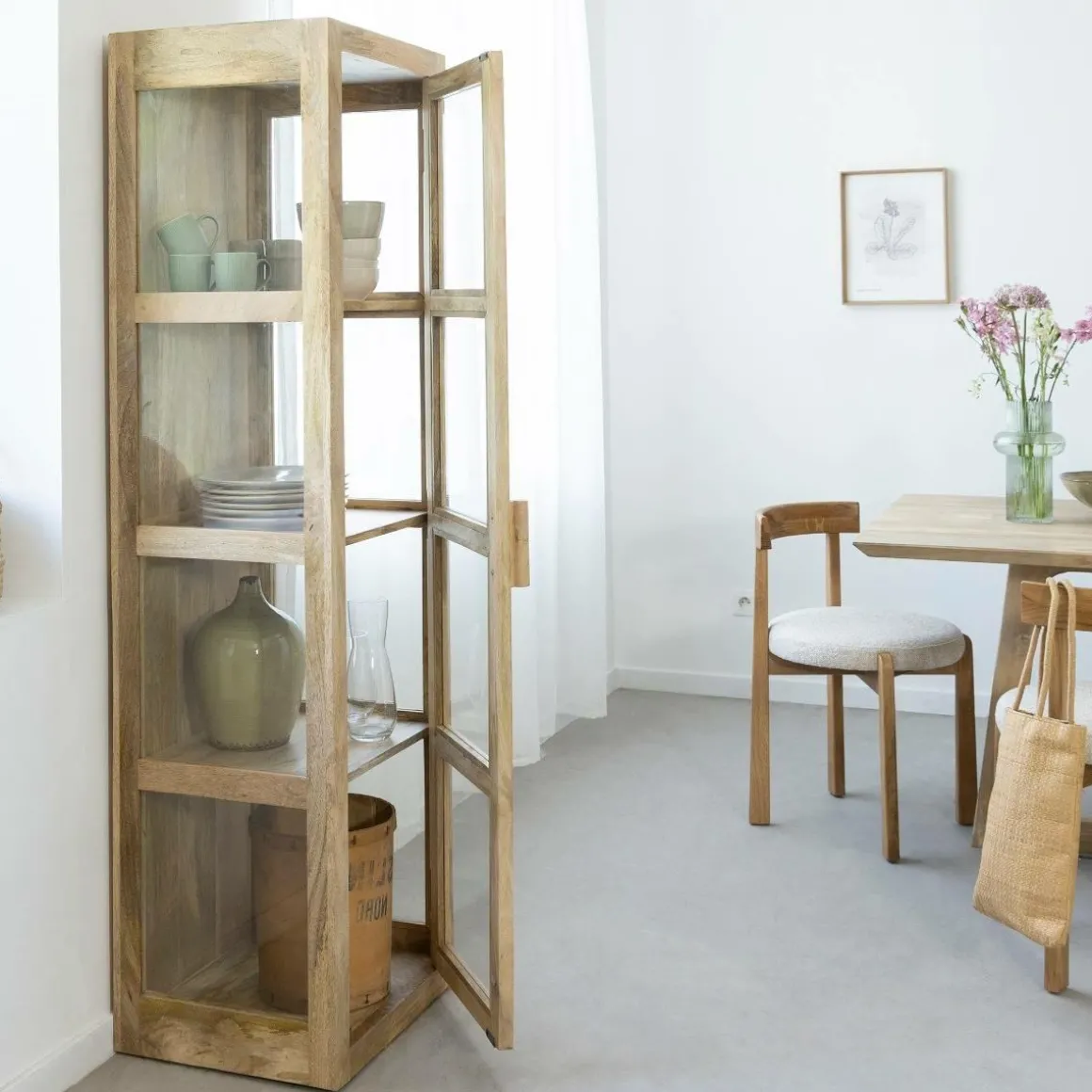 Fabriquée en manguier massif, cette vitrine arbore une finition brute qui laisse apparaître les nuances et le grain unique de l’essence. Les montants épais, les lignes droites et les niches ouvertes lui confèrent une allure artisanale, presque sculpturale. Idéale pour exposer vos objets préférés, livres, vaisselle ou curiosités déco, elle devient un point focal fort dans un salon, une cuisine ou une entrée. Avec ses 4 niveaux de rangement et ses ouvertures latérales, cette vitrine allie praticité et originalité.