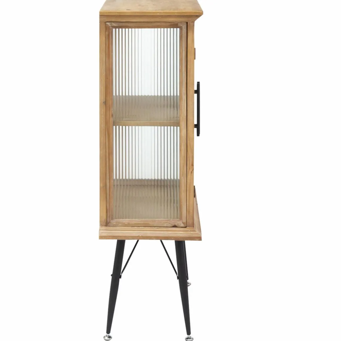 On adore l’alliance entre le bois de sapin et le métal noir qui représente la collaboration entre l’ancien et le moderne. Ce buffet mettra l’accent sur le rangement grâce à ses 2 portes vitrées striées derrière lesquelles se cache une large étagère vous offrant 2 niches pour ranger. Ainsi, vous pourrez y stocker votre service de table sans aucune difficulté. Profitez de plus du plateau pour y apposer des objets de déco.