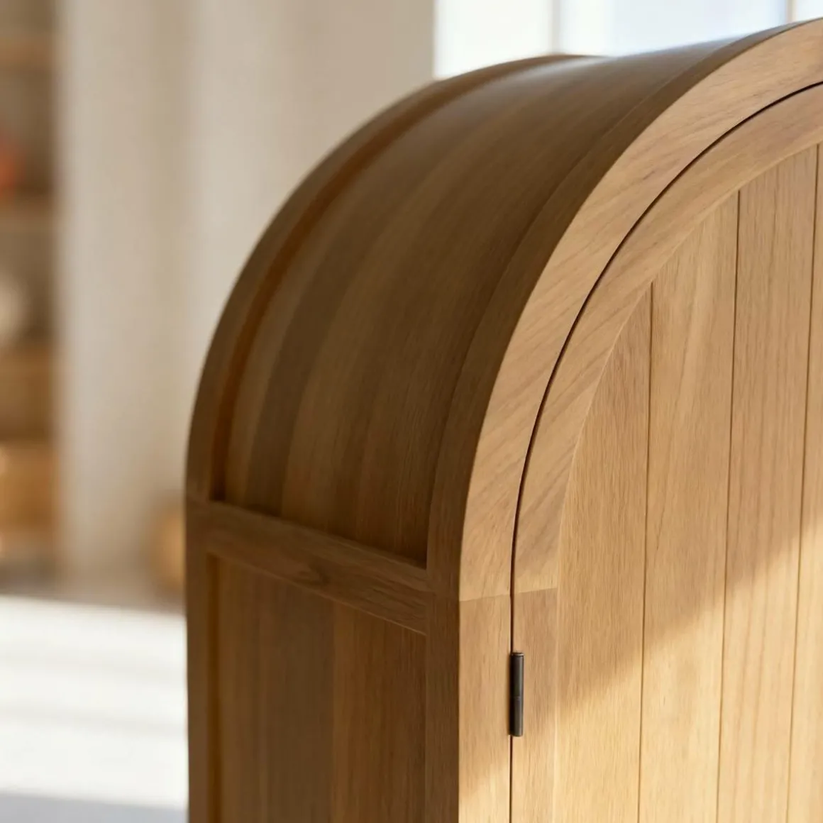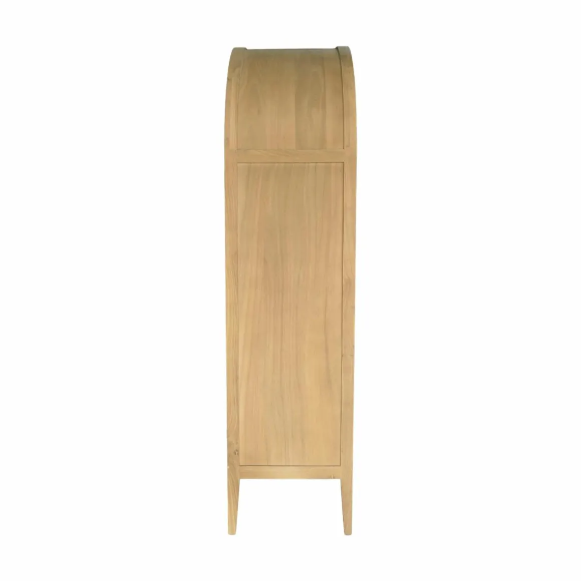 Cette armoire en bois d’orme allie élégance naturelle et charme intemporel. Son design tout en douceur, marqué par des portes cintrées et des lignes épurées, en fait une pièce aussi fonctionnelle que décorative. Le bois d’orme, apprécié pour son grain délicat et sa teinte claire, apporte une atmosphère chaleureuse et apaisante à la pièce.
